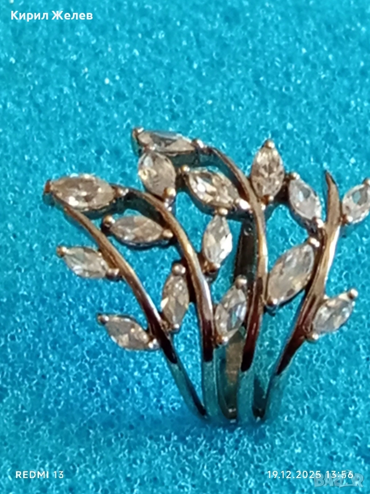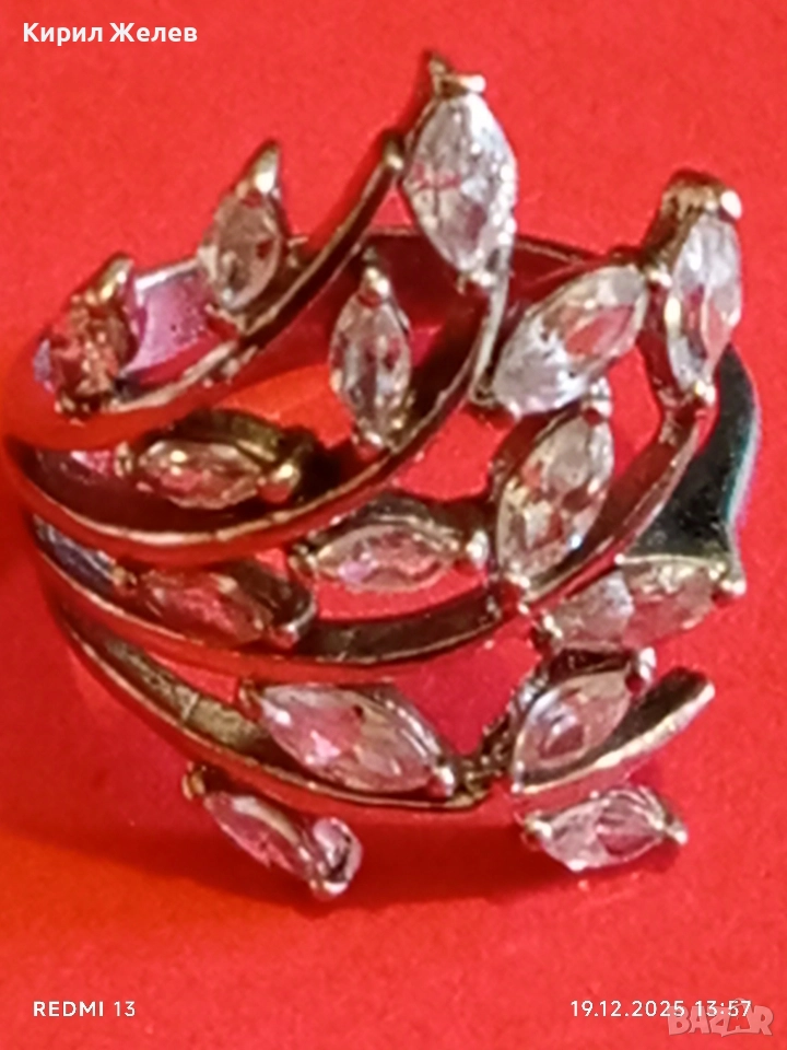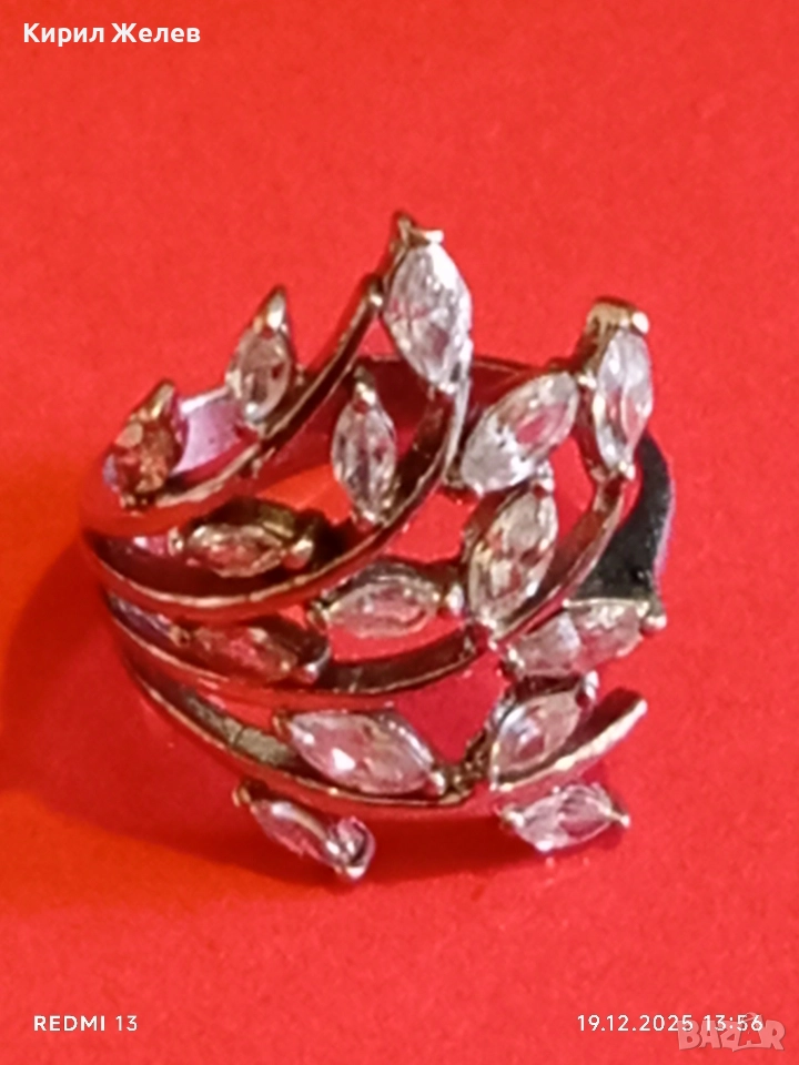 Блестящт пръстен родий и сребро с ювелирно инкрустирани кристали 26177