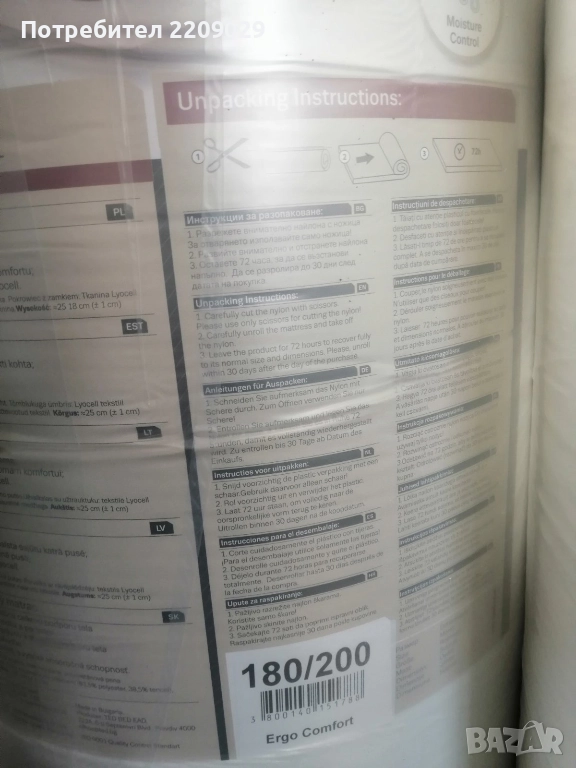 Матрак ergo comfort 180х200 чисто нов запечатан
