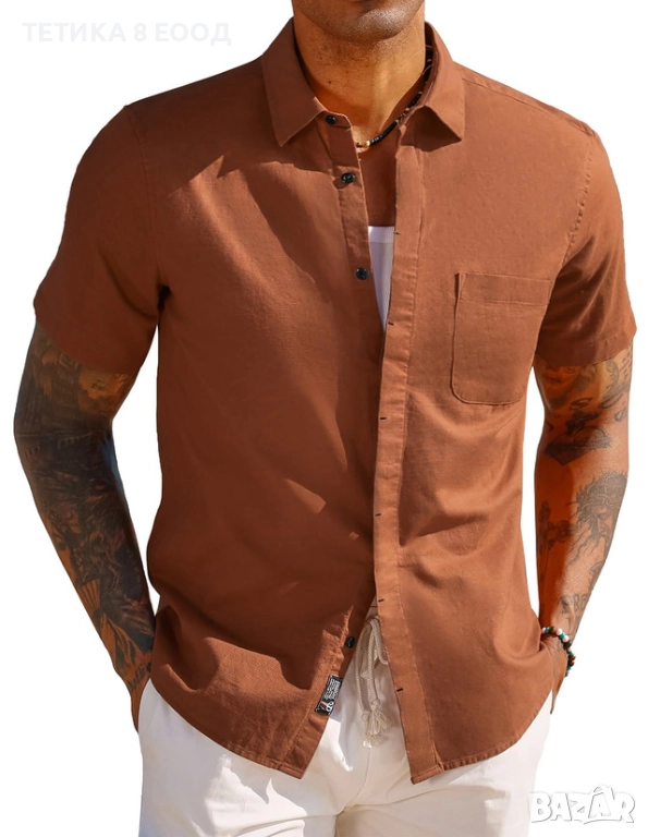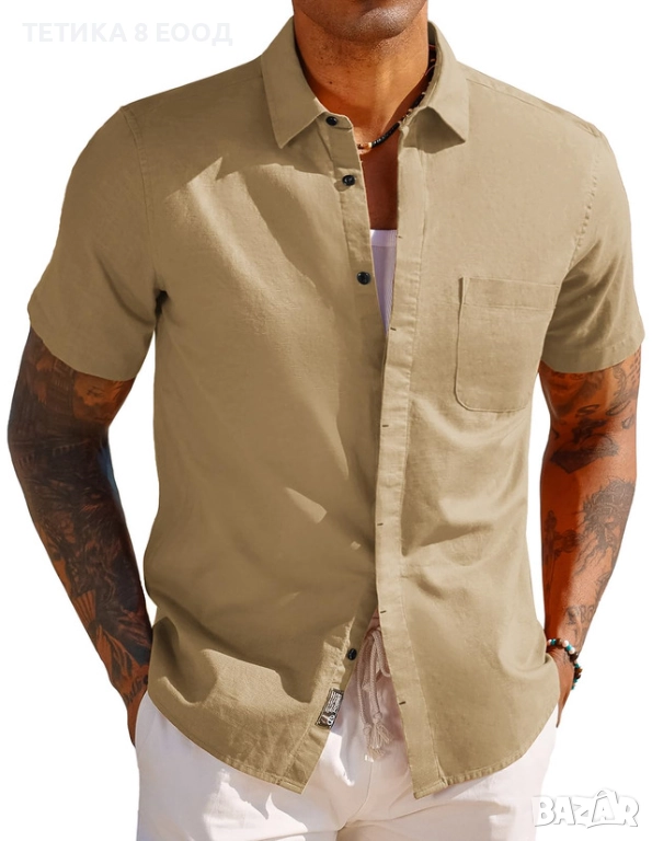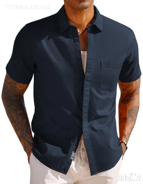 мъжки ризи, ленени ризи, летни ризи, комплект ризи, PJ Paul Jones, мъжки дрехи, къс ръкав, памук и лен, casual ризи, ризи за лято, размер S, тъмно синя риза, кафява риза, хаки риза