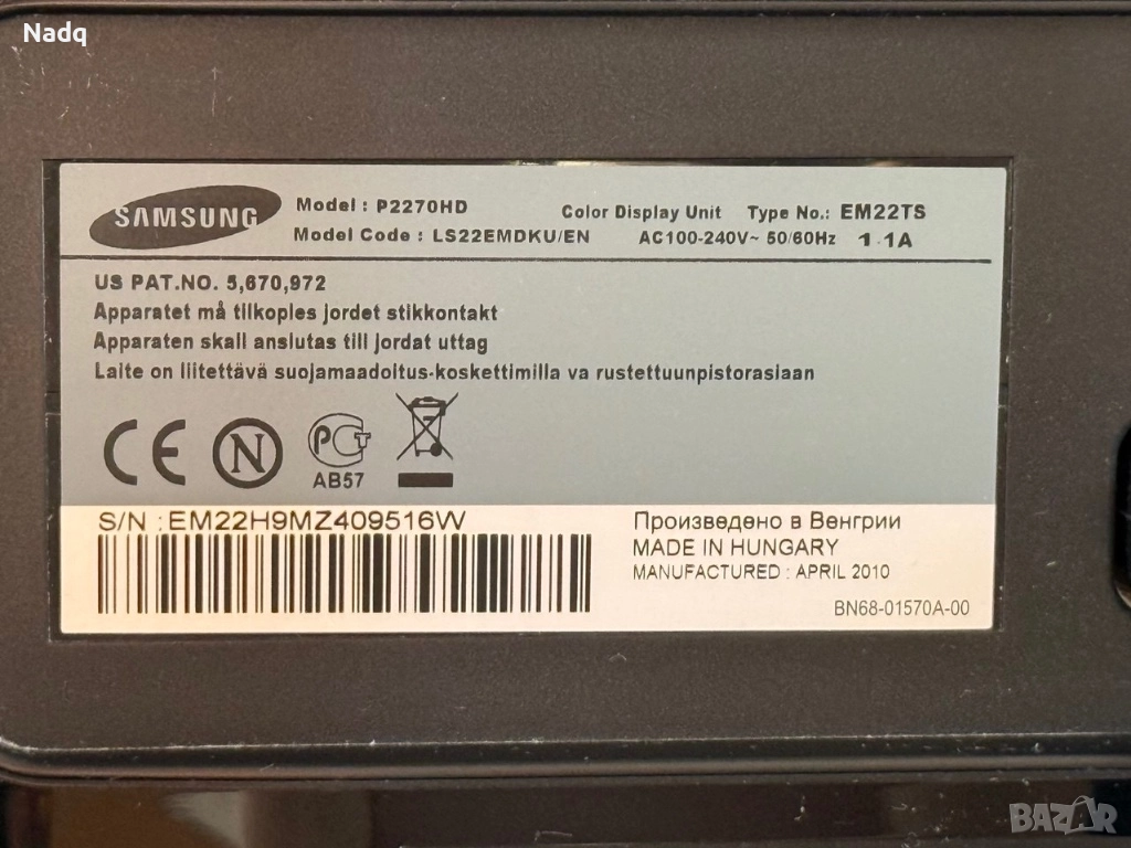 Продавам Samsung SM-P2270HD – монитор и телевизор в едно – много удобен за компютър, ТВ, конзоли и мултимедия. Работи перфектно и е в отлично състояние.