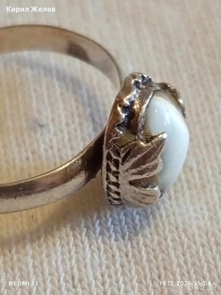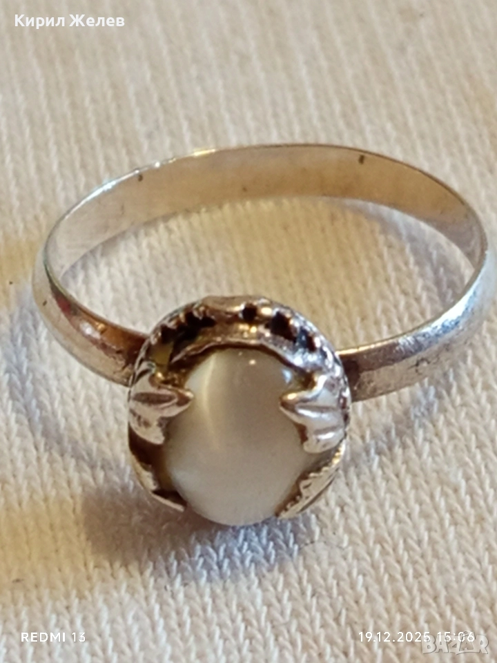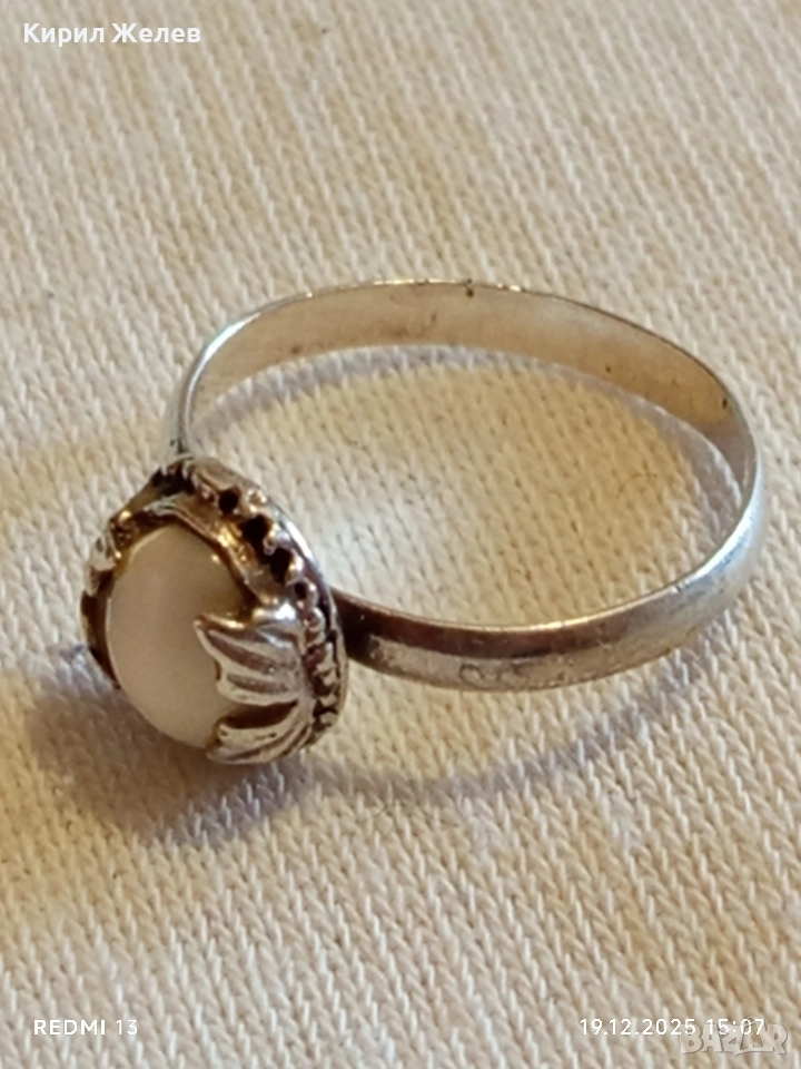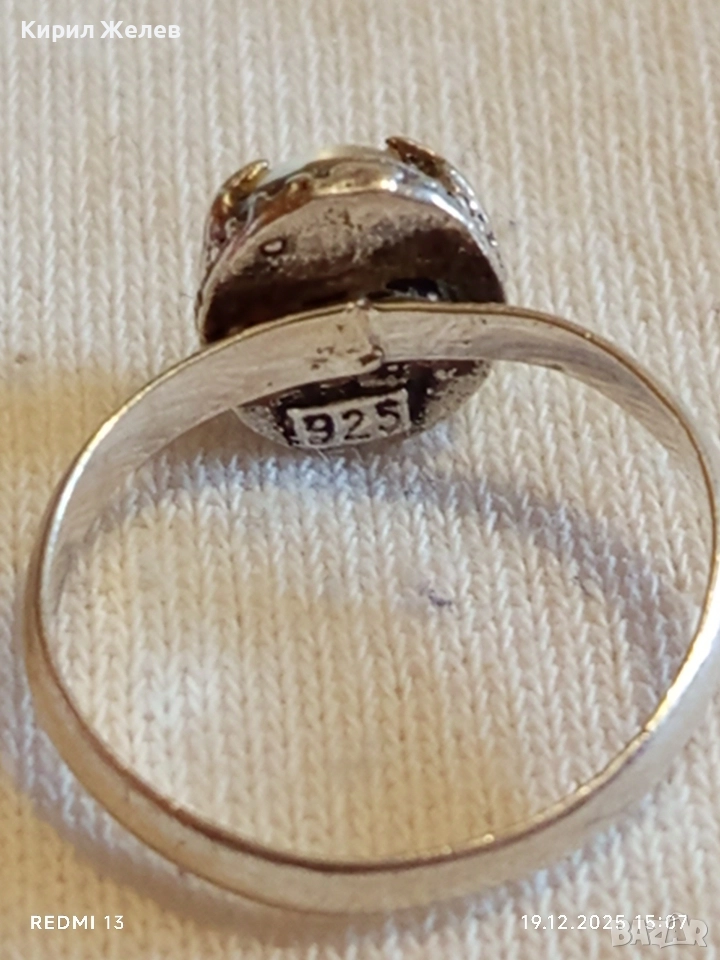 Дамски сребърен пръстен с флорален мотив и полускъпоценен камък 52488
