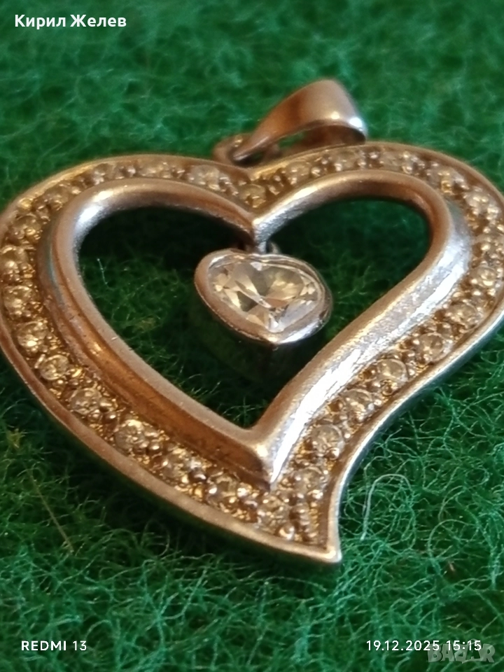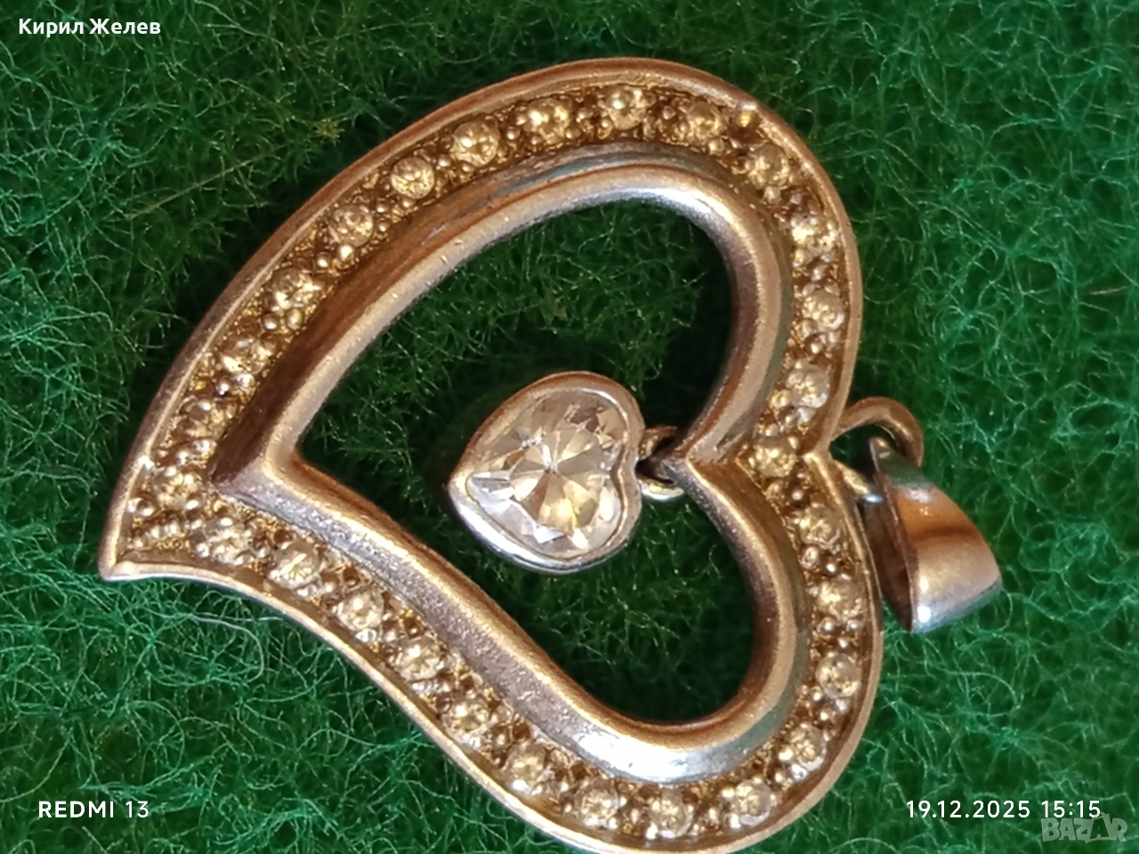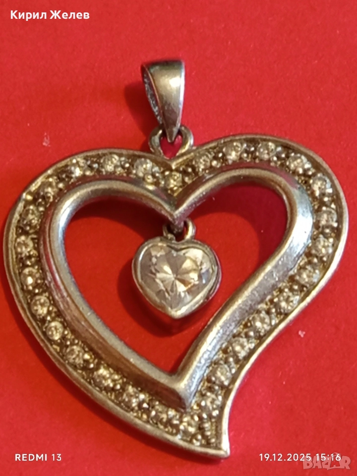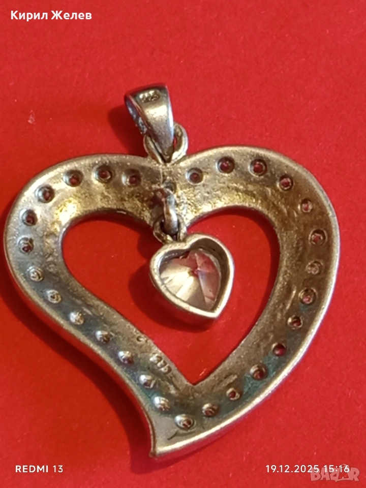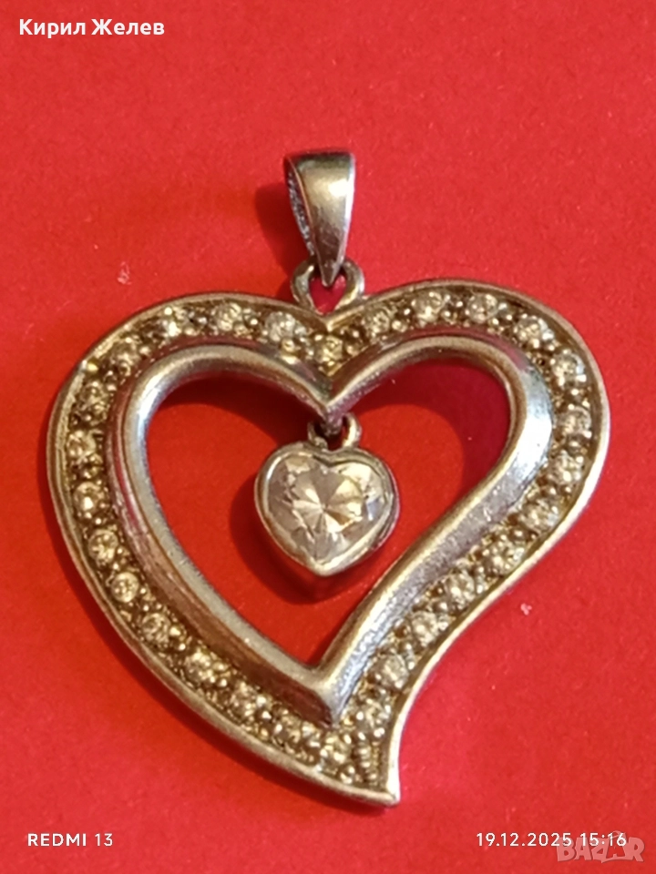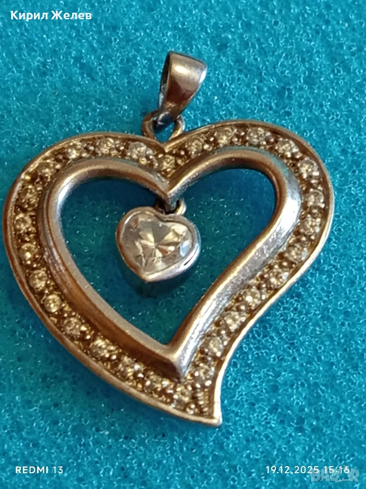 Романтична сребърна висулка във формата на сърце с инкрустирани кристали 31244