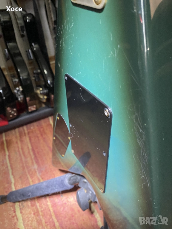 Details: Has a lot of scratches, specially in the rear side of the body. The back panel has been replaced for one that fits "enough", but not perfect. Tremolo arm is missing. There is a crack in the finish on the neck socket.