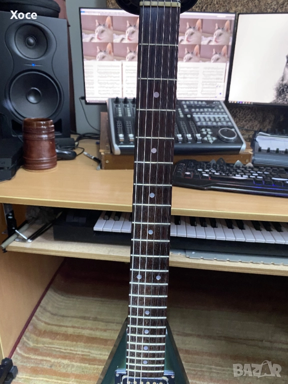 Наистина се колебая дали да я продам — вероятно ще съжалявам, защото съм огромен фен на китарите Aria Pro II от 80-те. Но вече имам друг модел XX и спестявам, за да си купя бяла XX с графика на мълния.
