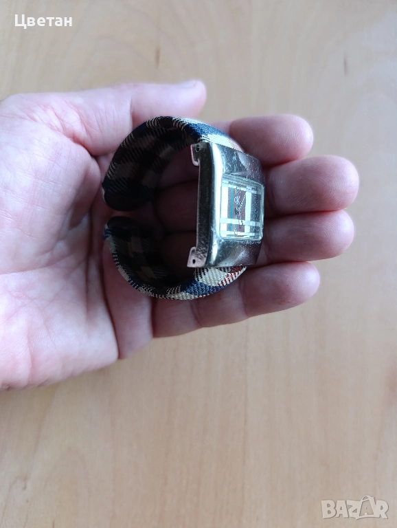 Качествен механизъм, неръждаема стомана, каишка тип гривна покрита с тартанов плат.