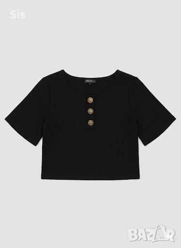 Подходяща за пола или панталон с висока талия. Черен цвят ,отпред със златисти копчета. Нова ,не е носена. Става ,за S и за М размер.
