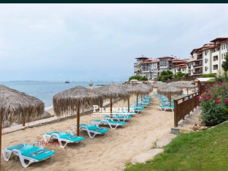 Продава се двустаен апартамент във VIP комплекс в Свети Влас. Площ 83 м², със собствена отделна тераса. Първа линия море, със собствен плаж. Изключително красива и отлично поддържана територия на комплекса. На разположение са 8 басейна, 3 ресторанта, четириетажен паркинг, детски клуб и анимация, салон за красота, SPA център, супермаркет, фитнес зала, закрит отопляем басейн. Охраняема територия. Подходящ за целогодишно живеене.