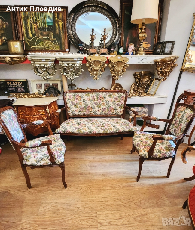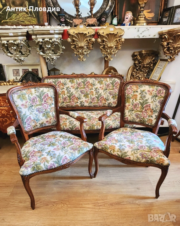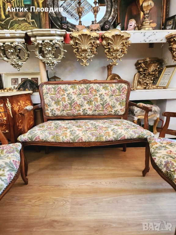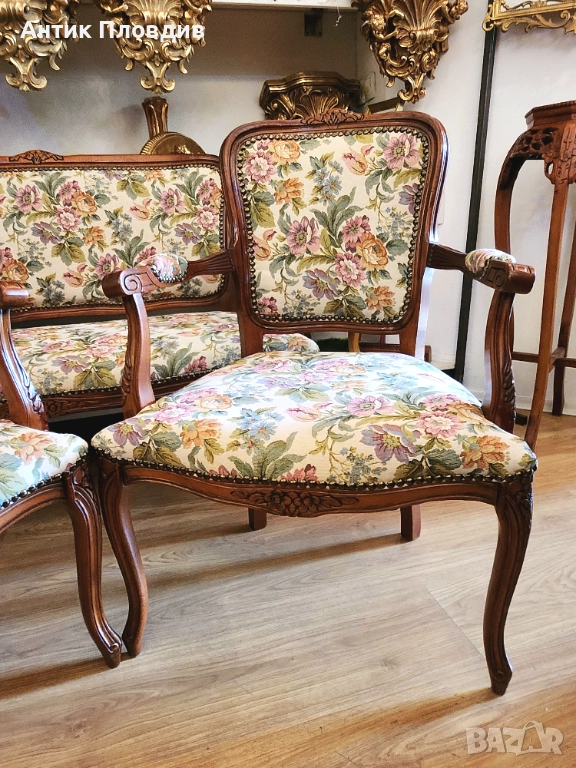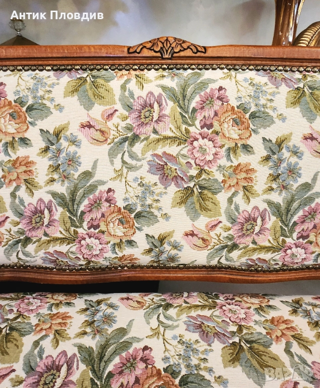 Изцяло реставрирана и претапицирана с жакардова дамаска с флорален мотив.
