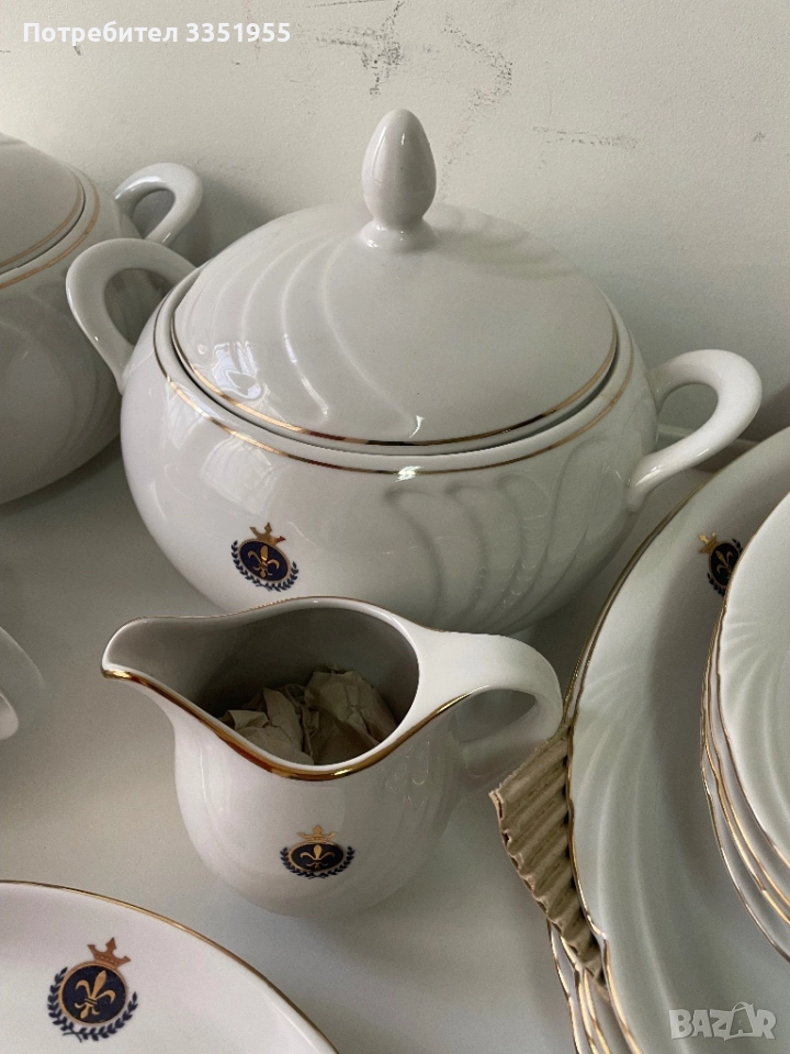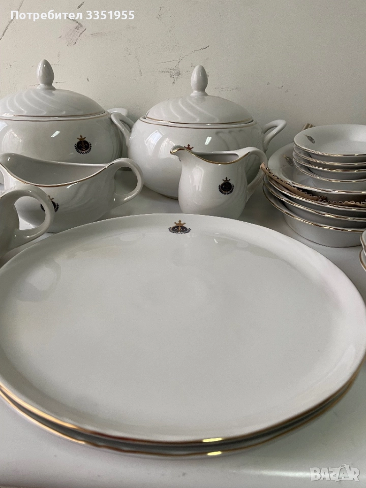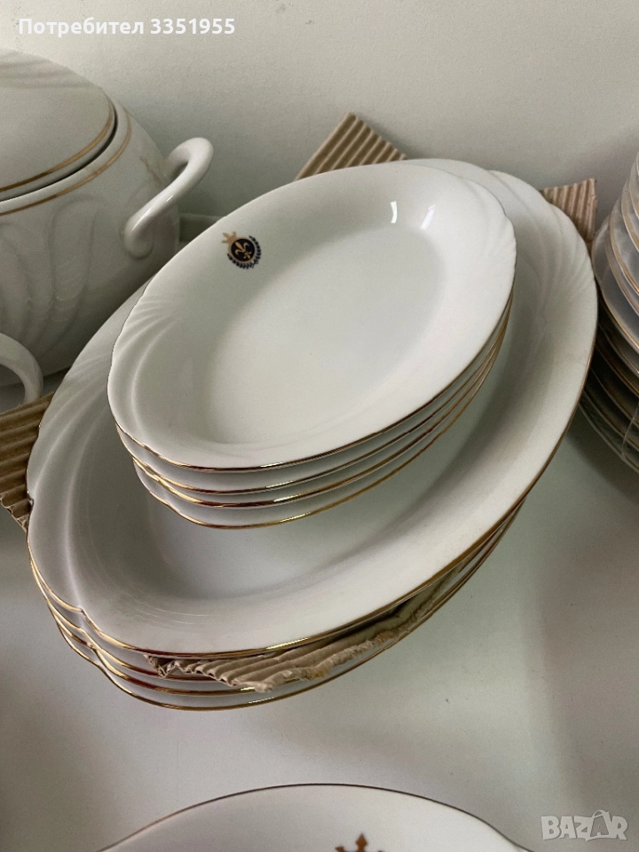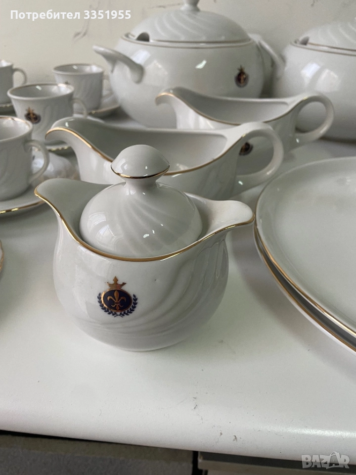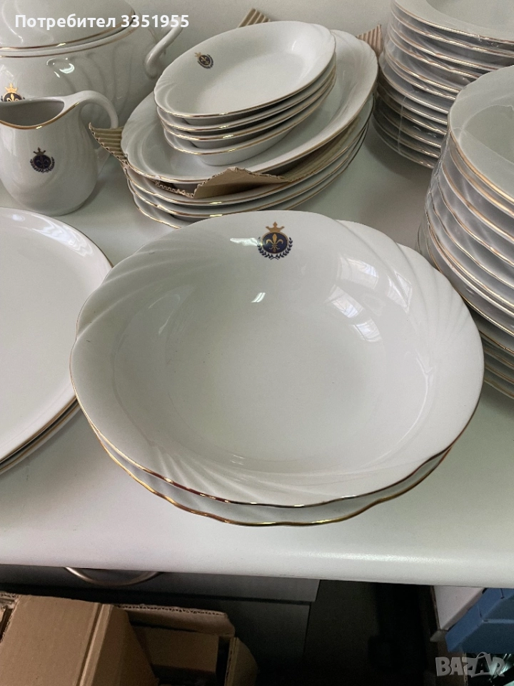 Предлагам ви един уникален сервиз от костен порцелан в луксозна серия която не се предлага в магазините, изработен преди около 30 години от фин бял порцелан с златен Кант и красиви извивки, може да се ползва за 24 човека. Всички части са общо 164 броя нови в кашоните с найлоните, за повече инфо по телефона. Само лично предаване без Куриери, защото ще ги счупят.