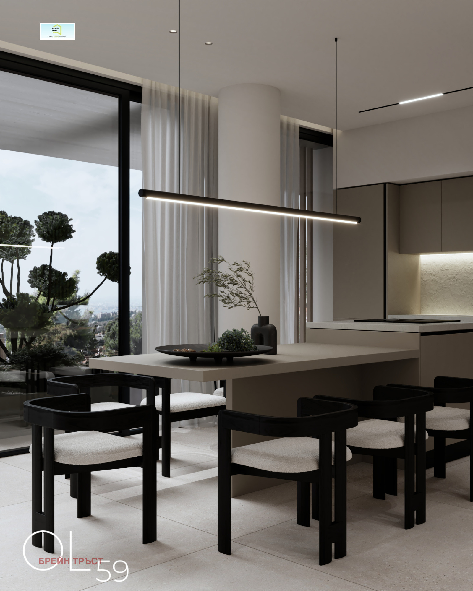 Brain Trust има удоволствието да предложи 3-стаен апартамент с впечатляващите 125 кв.м. Състои се от 2 спални, 2 бани, 1 кухня, 1 хол и освен това с 2 подземни паркоместа. Имотът е построен през 2025 г. Отоплението е автономно с термопомпа, подово отопление, климатик, звукоизолация, термофасада, алуминиева дограма, енергиен сертификат: A++. Подовете са плочки, дърво. Жилището е с югозападно изложение. Апартаментът е с рампа/достъп за инвалидни колички, луксозен и разполага със следните уникални характеристики и предимства: комарници, блиндирана врата, видеонаблюдение, аларма, охранителни камери, умен дом, зарядно за кола.