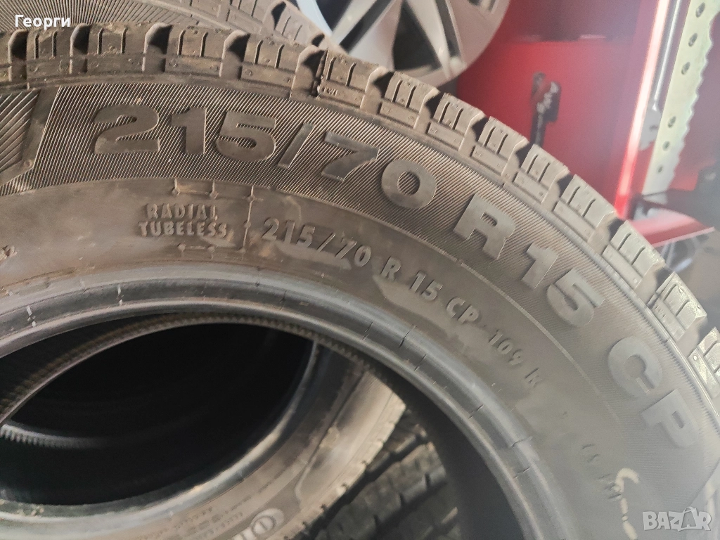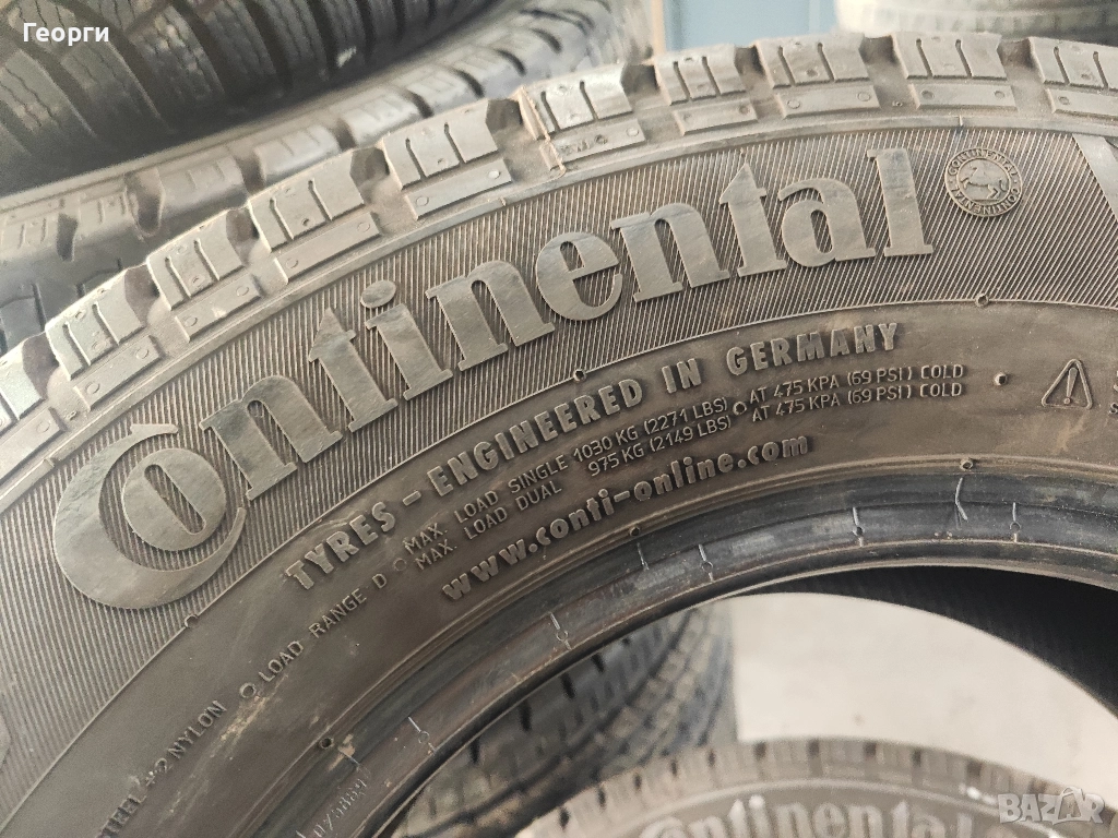 4бр. Continental, 215/70/15C ДОТ 0121, 9.2mm грайфер, 10-плата. Гумите са перфектни, практически нови, без забележки, проверени са машинно за кривини, балони! Разполагаме с всякакъв размер нова и втора употреба гуми от 14-22 цола за автомобил, джип и бус.