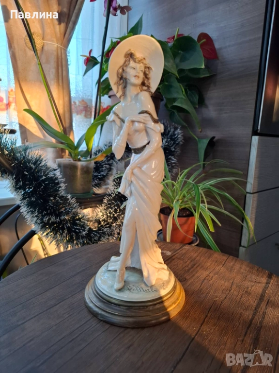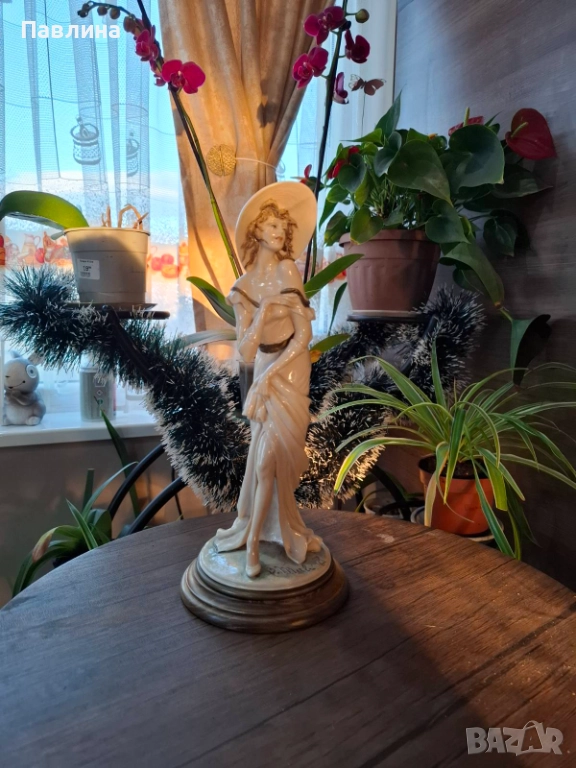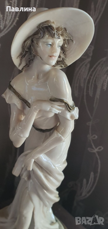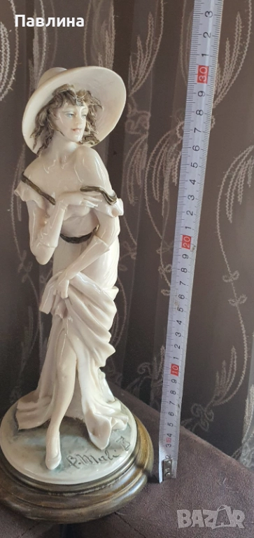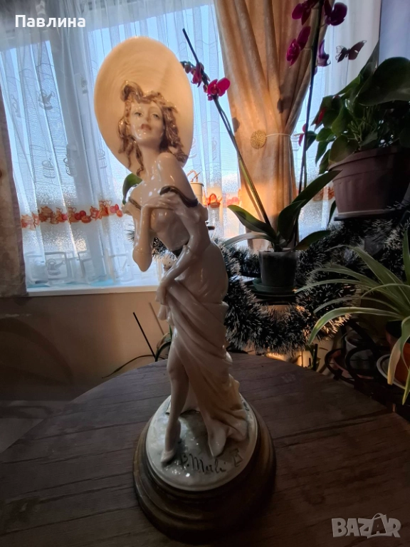 Много красива статуетка с маркировка на Мерли. Висока е 30 см. изработена от мраморен прах и смола. Извайва се като скулптура след което се лакира. Висока 30см