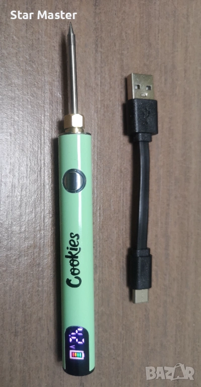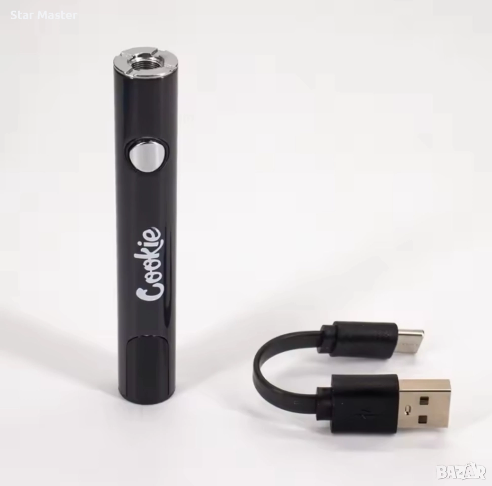 Висококачествена презареждаща се батерия Cookies 2.7 - 4.2V с LED дисплей, 650mAh, резба 510. В комплект със зарядно USB. Тел.:0988304113