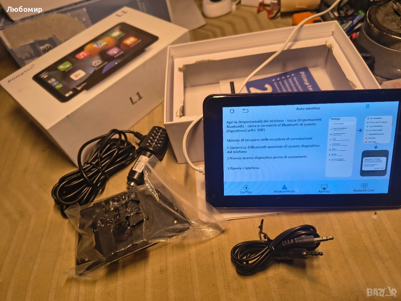 Plimpton преносим Carplay Android Auto екран за кола, 7-инчов IPS сензорен екран за iOS безжичен