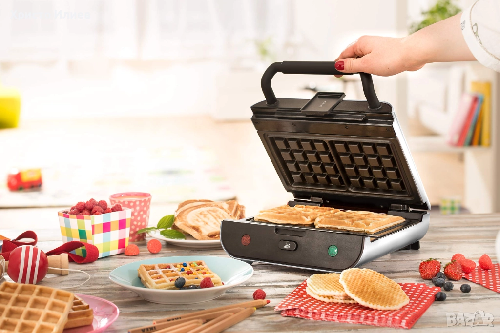 - Универсалност 2 в 1: Пригответе както златисти гофрети, така и вкусни сандвичи със сменяемите чинии. Идеални за разнообразяване на удоволствията в кухнята.
