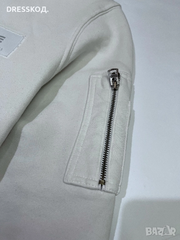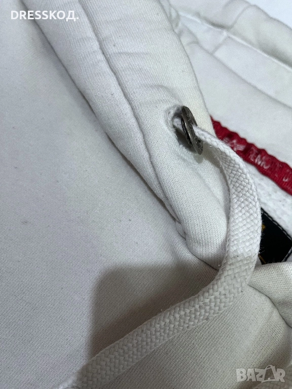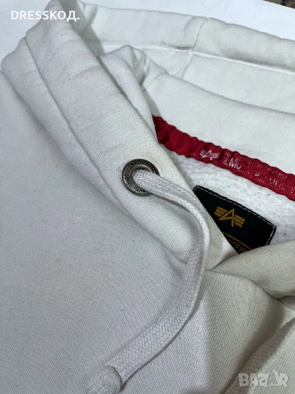По суичъра има леки мъхове. Липсва червената лента, която по принцип е към страничния джоб с цип. В предната част на качулката има лек жълтеникав оттенък, който не изчезна след пране, но почти не се забелязва. Моля, разгледайте снимките. 🙂