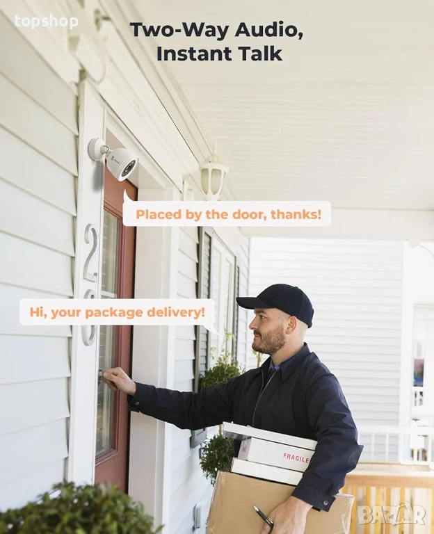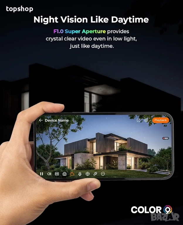 4MP Full HD система] С помощта на тази 4MP Full HD домашна камера можете да увеличите сигурността си. F1.0 осигурява ясно наблюдение и нощно виждане с ярки цветове, предоставяйки детайлни изображения при всякакви условия на осветление за денонощна защита.