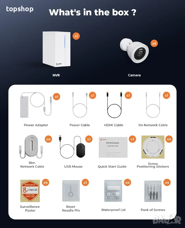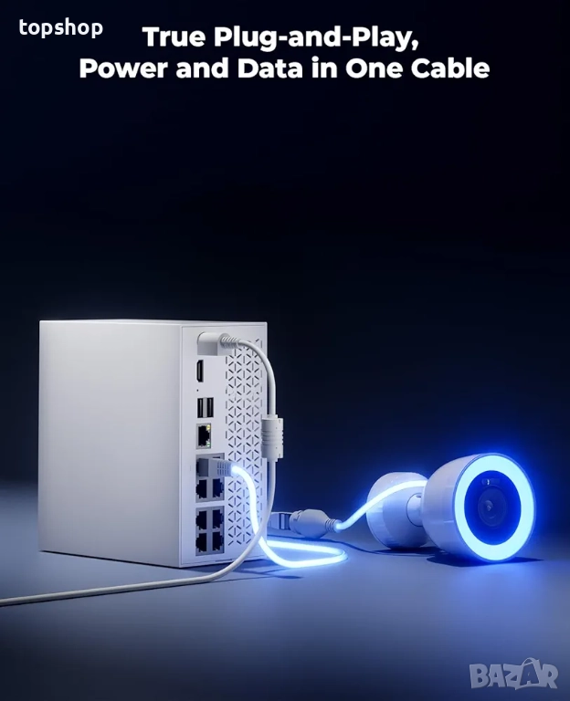 [PoE инсталация] Лесно инсталирайте тази PoE система от камери с един мрежов кабел. С вградения 2TB твърд диск можете да записвате непрекъснато до 32 дни. За повече място, паметта може лесно да се разшири.