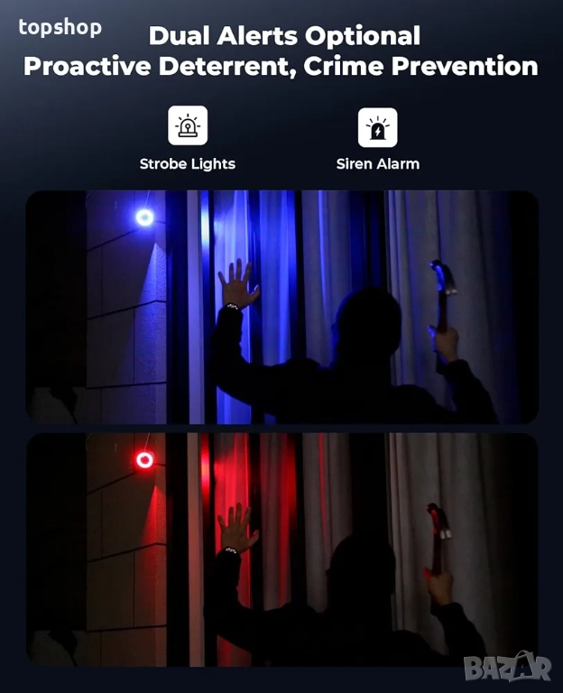 [IP67 Водоустойчивост и интелигентни функции за възпиране] Тази надеждна система за наблюдение е със степен на защита IP67, което я прави подходяща за употреба на закрито и открито. Тя включва вграден микрофон и високоговорител за двупосочно аудио, подобрявайки сигурността и взаимодействието. Тази кабелна система за охранителни камери с динамична стробоскопична светлина и сирена ще увеличи сигурността. Получавайте известия в реално време чрез приложение и имейл и осъществявайте дистанционен достъп до стрийминг на живо и възпроизвеждане на вашите устройства.