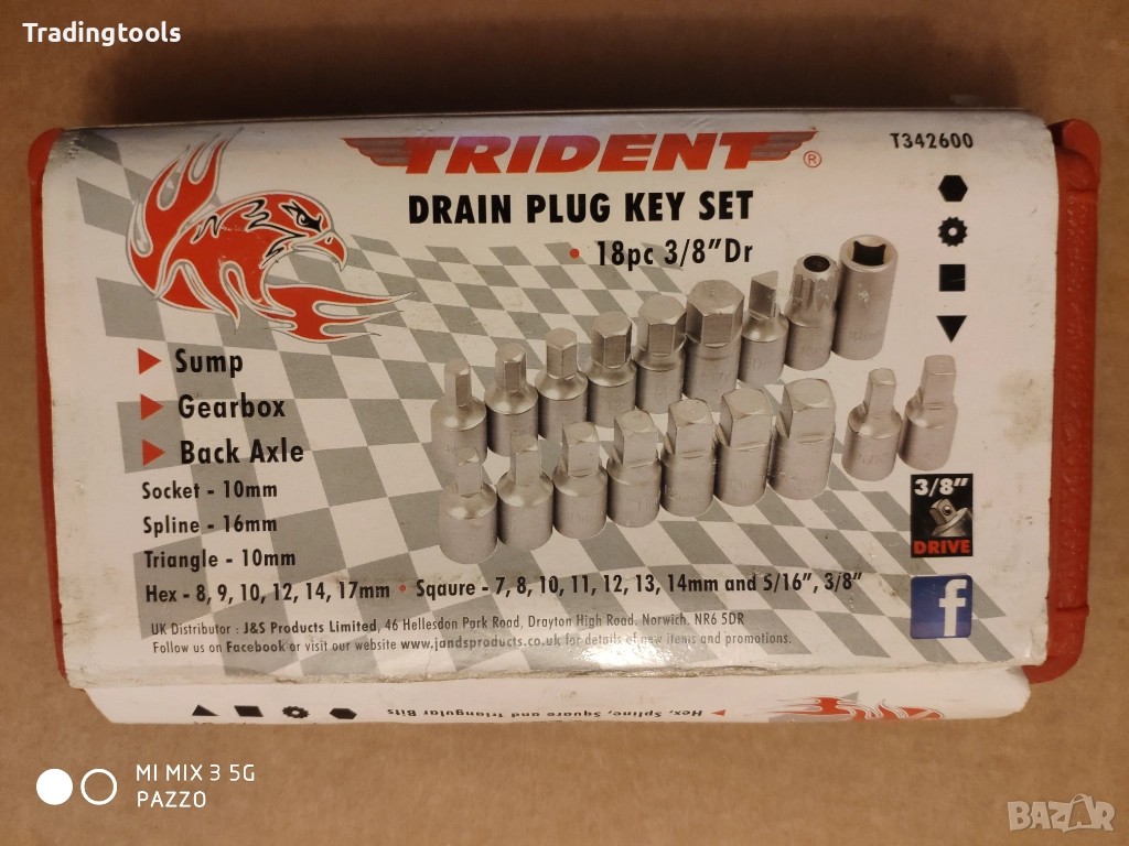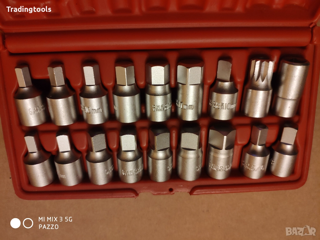 TRIDENT TOOLS 18бр 3/8 DRAIN PLUG KEY SET вложки камъни комплект → Обява 52852160