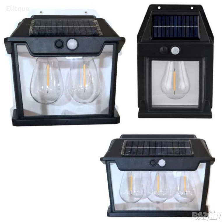 Стенна лампа с 1,2 или 3 LED крушки, сензор за движение и фотоволтаичен панел за външна употреба, водоустойчива