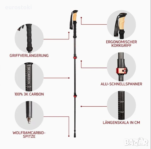 Устойчиви на счупване и ултра леки туристически щеки – тази въглеродна сгъваема телескопична щека е сред най-добрите планински екипировки. Трекинг щеките тежат само 250 грама и са изключително стабилни и нечупливи.