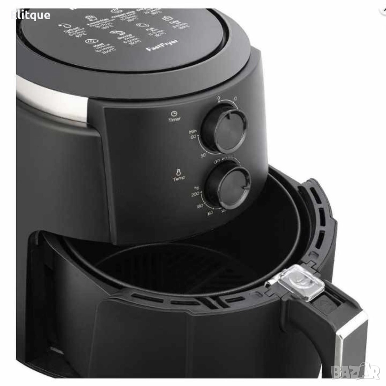 Мощност от 1500 W5.5 L капацитет60 минутен таймер с Автоматично изключване Регулируема температура До 200 °C Кошница за пържене Система за циркулация на горещ въздух Декорация от неръждаема стомана Многофункционален
