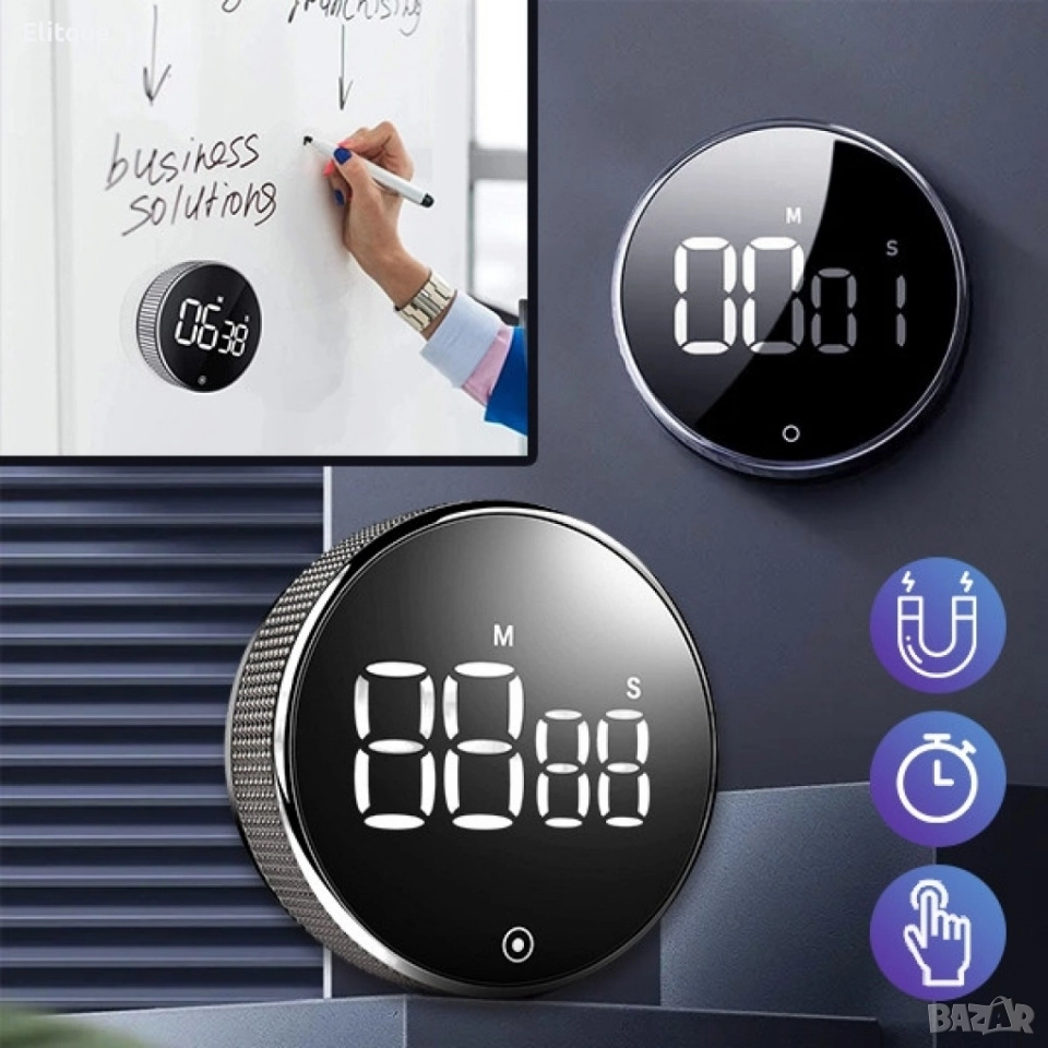 Материал / корпус: Пластмаса с висококачествено LED покритие; Размери / тегло: 7.8 x 2.6 см, 75 гр; Мощност / батерия: Работи с 3x AAA батерии (не включени в комплекта); Допълнителни функции: Режими на работа: хронометър (отброяване нагоре) и таймер (отброяване надолу), три нива на звука (включително безшумен режим); Сертификации / безопасност: Безопасен за използване в кухни и работни помещения; Гаранция: 12 месеца.