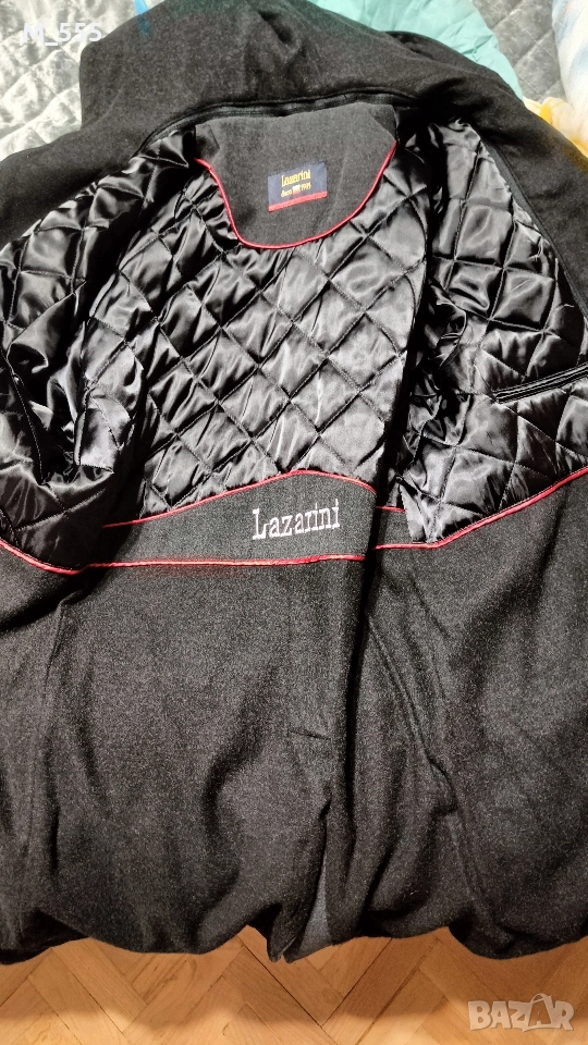 Мъжко палто размер 58, носено е веднъж от 90% вълна на марката Lazarini. Качулката се маха с цип