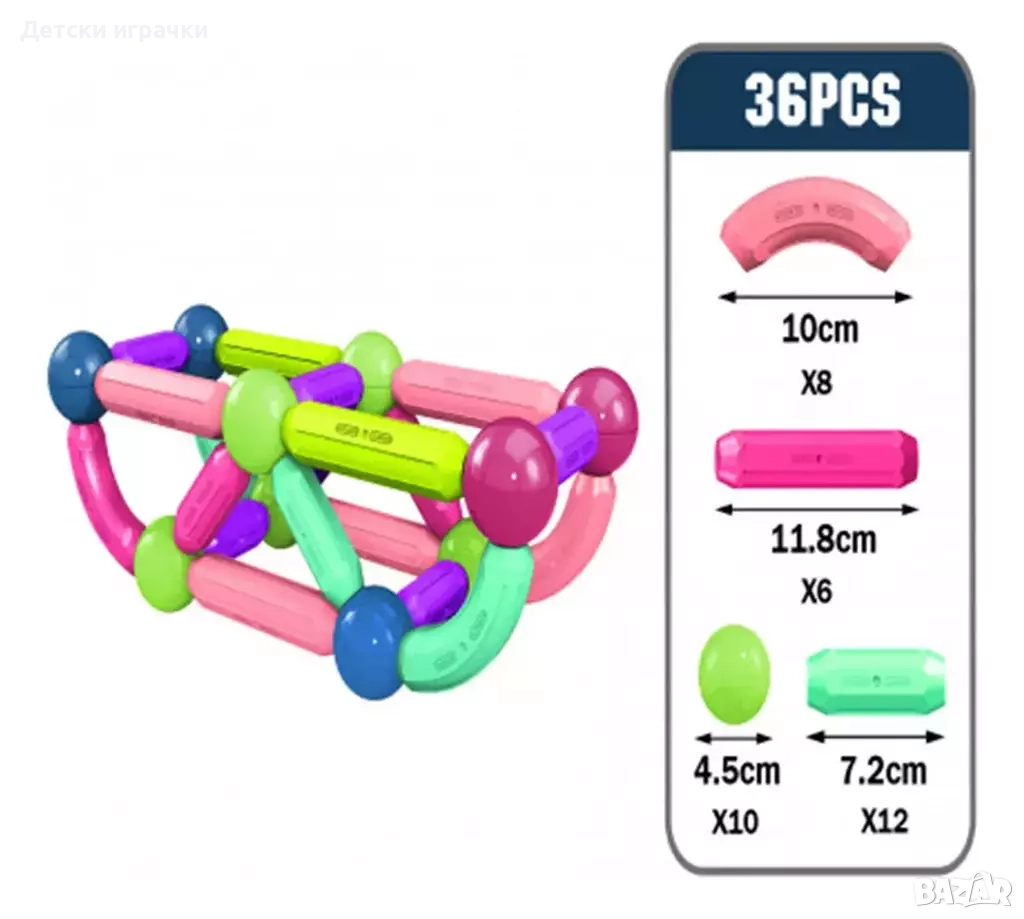 Магнитен конструктор 36ч, Магнитни блокчета, пръчки, магнитни топки за строеж