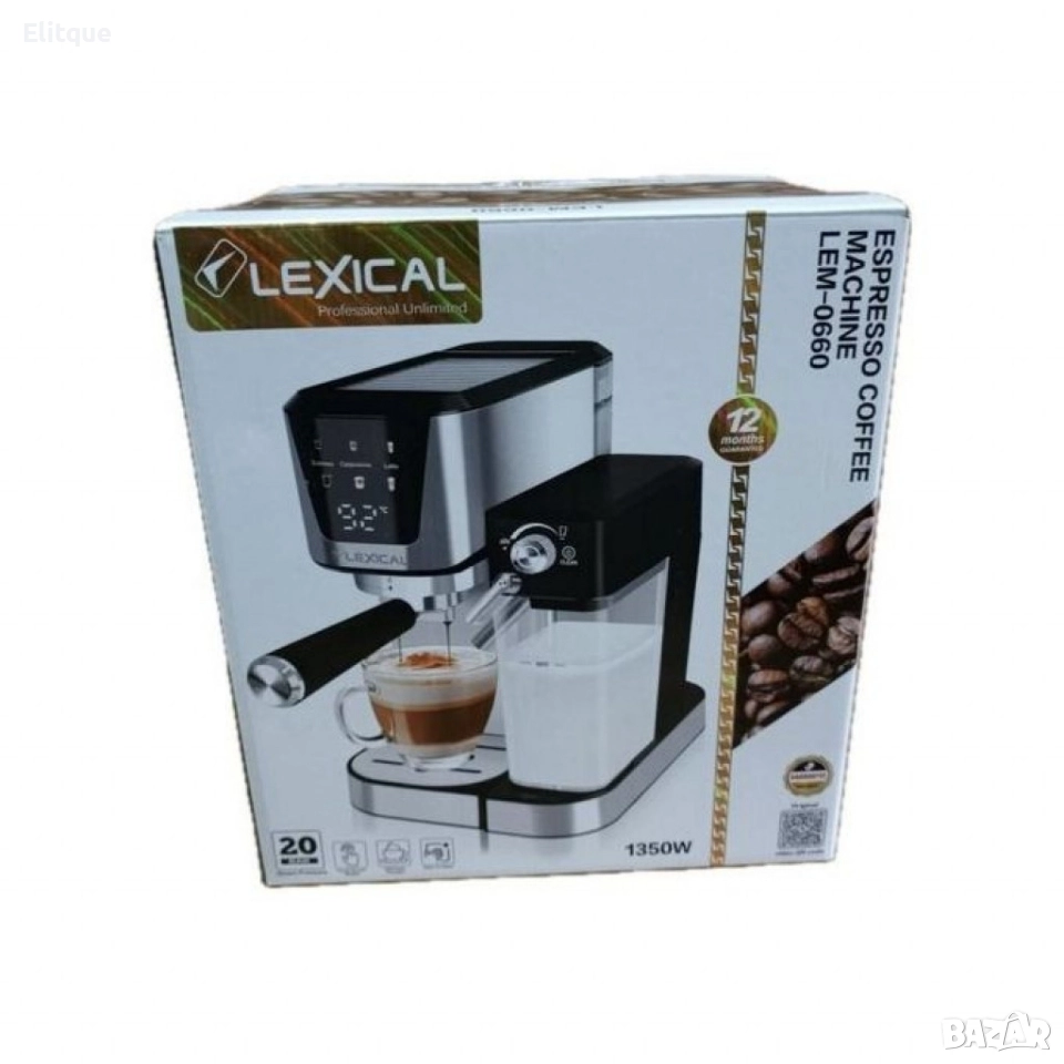 Мощност: 1300 W; Напрежение: 220-240V~50/60 Hz'; Помпа за налягане: 20 бара, за оптимално извличане на аромата и вкуса; Резервоар за вода: 1000 мл, подвижен и прозрачен; Резервоар за мляко: 700 мл, разглобяем и прозрачен'; Котел: Изработен от лята под налягане алуминиева сплав, за бързо и равномерно нагряване; Дюза за пяна: Подвижна, за перфектна млечна пяна; 24 месеца гаранция; Подвижна тава за капки: Да, за лесно почистване и поддръжка.