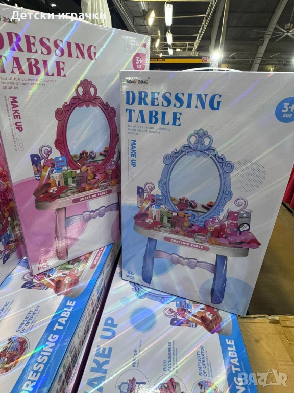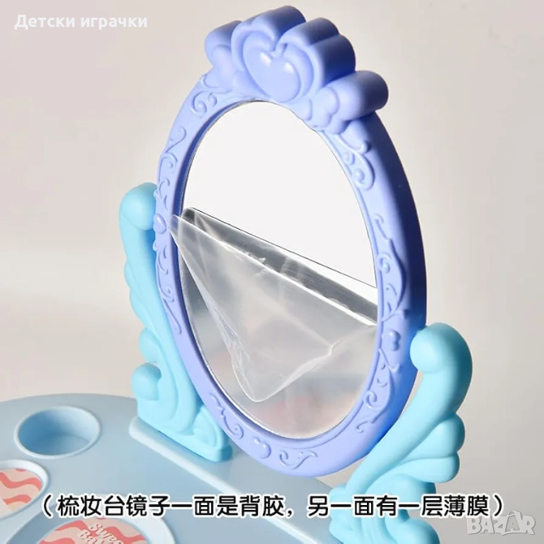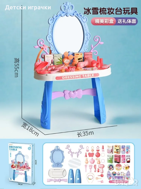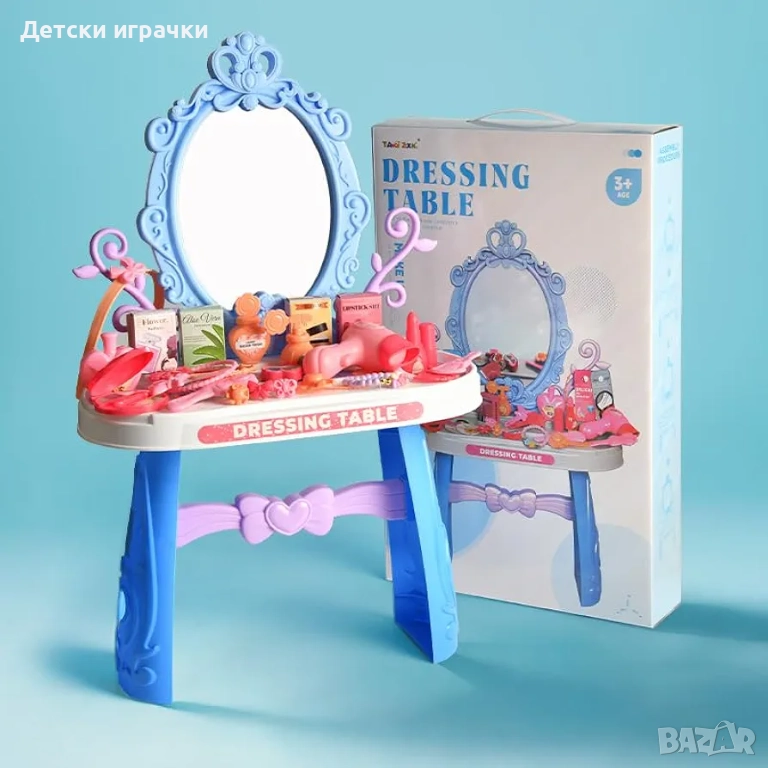 Тоалетка с огледало и аксесоари за грим, синя/розова