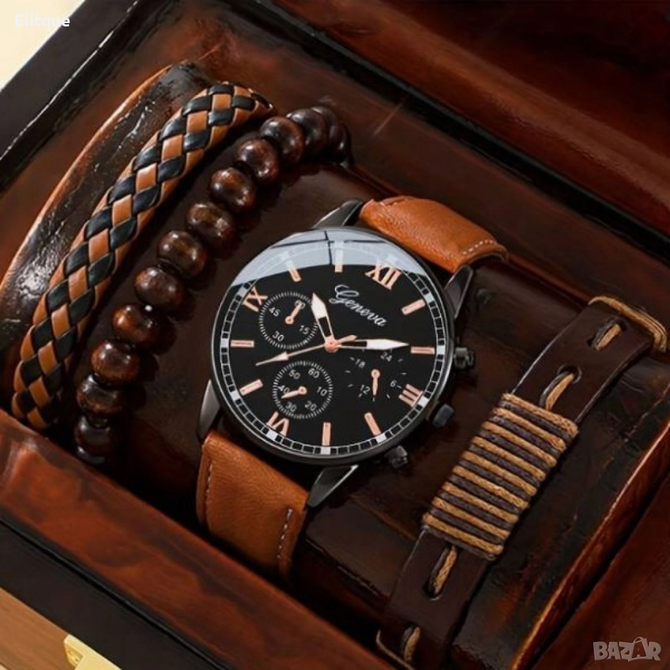 Комплект ръчен часовник с три гривни – стилен аксесоар за всеки повод
