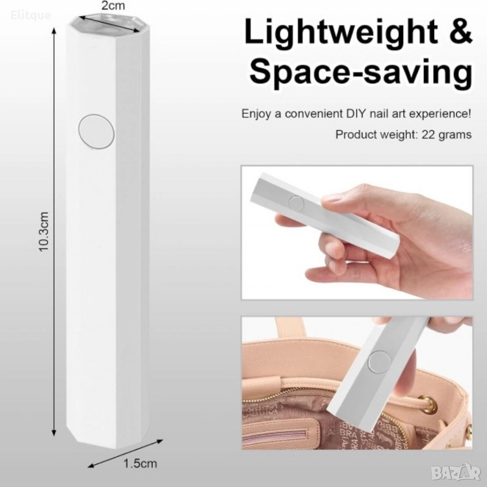 Материал: Пластмаса, литиево-йонна батерия; Размери: 10,3 x 1,9 x 1,6 см; Тегло: 22 г; Мощност: 3W; Съвместимост: Подходяща за всички видове маникюр (полигел, лак за нокти, акрил и др.); Други характеристики: Type-C зареждане, 180mAh батерия, два режима на таймера; Гаранция: 12 месеца.