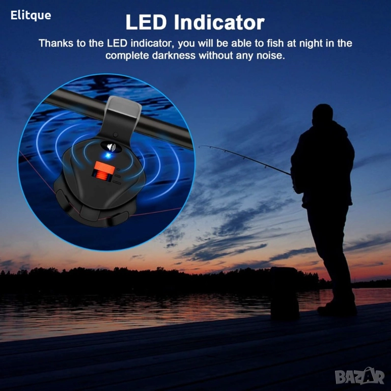 Електронен LED звънец за въдица с регулируем звук - идеален за дневен и нощен риболов на шаран