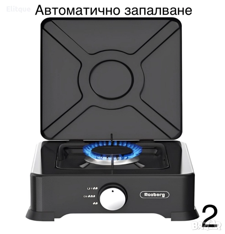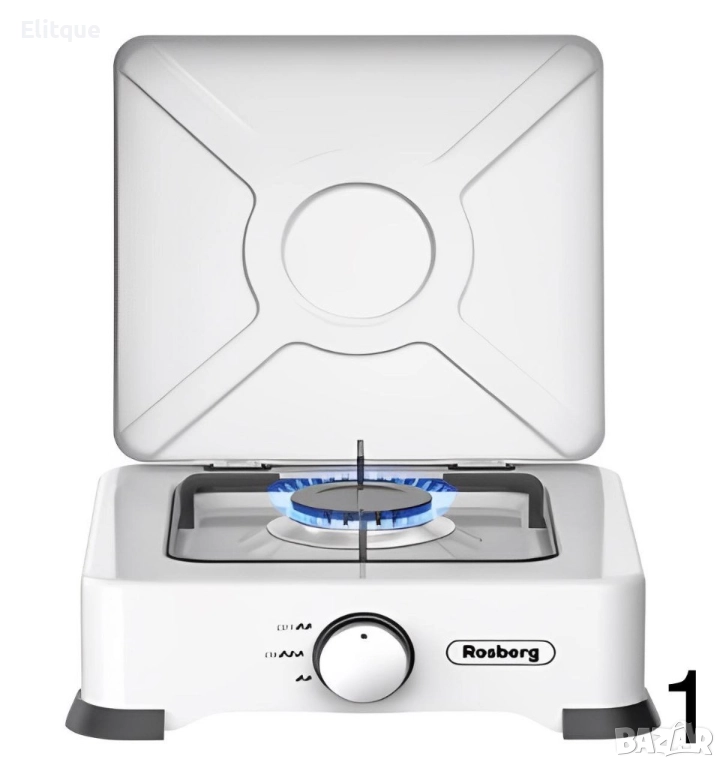 Единичен газов котлон с капак. Боядисан панел от въглеродна стомана Горелка от лят алуминий с емайлирана капачка. Метална скара за тиган. По-добър пламък и по-бързо готвене. Икономичен и мощен. Висококачествен, безопасен и лесен за използване. Автоматично запалване (нужна е батерия AAA! НЕ Е ВКЛЮЧЕНА В КОМПЛЕКТА!). Мощност: 2.2 kWh. Тип газ: Бутан, Пропан и техните смеси. Налягане: 30 mbar. Размери: 30х30х9 см Уредът е предназначен за използване на открито и проветливо място. Задължително прочетете инструкциите преди да използвате уреда!