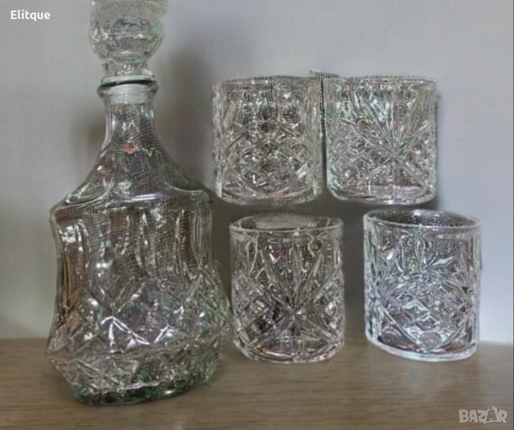 Материал: Висококачествено стъкло; Обем на гарафата: 700мл; Обем на чашите: 250 мл всяка; Брой части в комплекта: 5 (1 гарафа и 4 чаши); Подходящ за съдомиялна машина: Да; Цвят: Прозрачен.
