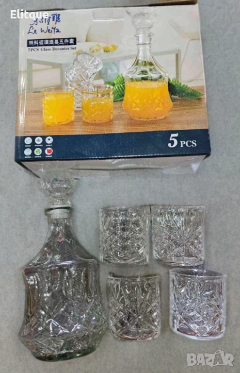 гарафа от 5 части е перфектно решение за всеки, който цени комбинацията от стил и функционалност. Изработен от висококачествени материали и с изискан дизайн, този комплект е създаден да впечатлява и улеснява сервирането на напитки при всякакви поводи. Независимо дали го използвате за ежедневна употреба или за специални събития, този комплект ще добави елегантност и удобство на вашата трапеза.