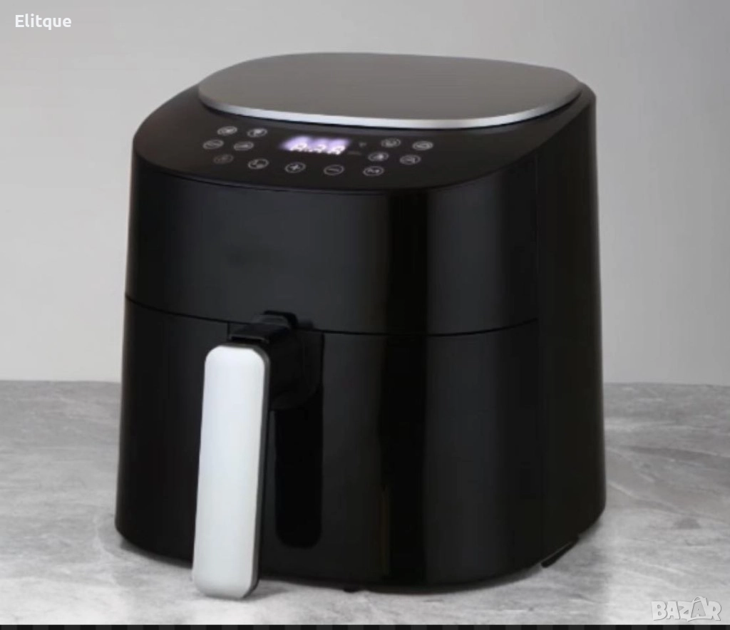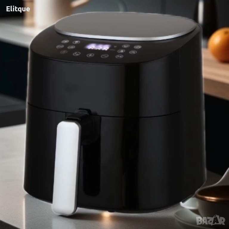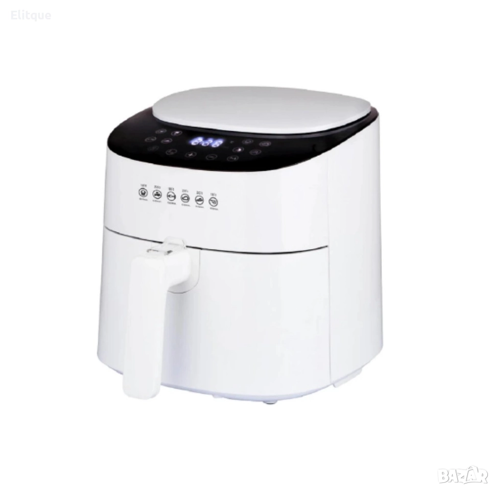 Подвижен съд за готвене с незалепващо покритие - 4,2 л. Сваляща се кошница за пържене - 3,5 л. Със защита от прегряване. Регулируема температура 60-220 градуса за различни рецепти Сензорен панел с голям размер с предварително зададени 8 рецепти. Неплъзгащи се крачета. Изглед под ъгъл и панел за управление. С няколко капки масло или без масло по време на процеса на пържене, за здравословен начин на живот. Части подходящи за съдомиялна машина, незалепващо покритие. Мощност: 220-240V~, 50/60Hz, 1300W цвят: Черен, бял.