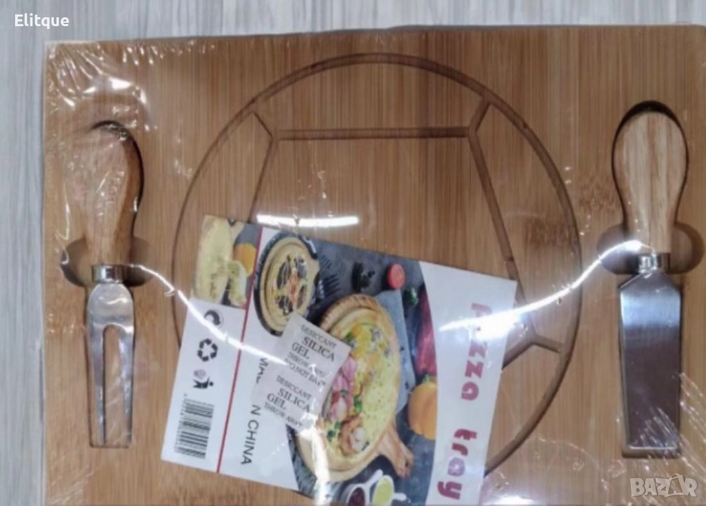 Дъската за пица с 2 прибора е изключително практичен и стилен аксесоар за всяка кухня. Тя предлага всичко необходимо за нарязване и сервиране на пица, като съчетава високо качество, елегантен дизайн и удобство. Със своите удобни размери и включени прибори, тази дъска ще се превърне в незаменим помощник в кухнята и ще добави нотка на изисканост на вашата трапеза. Размери: 29.5 x 19.5 x 1.5 см.