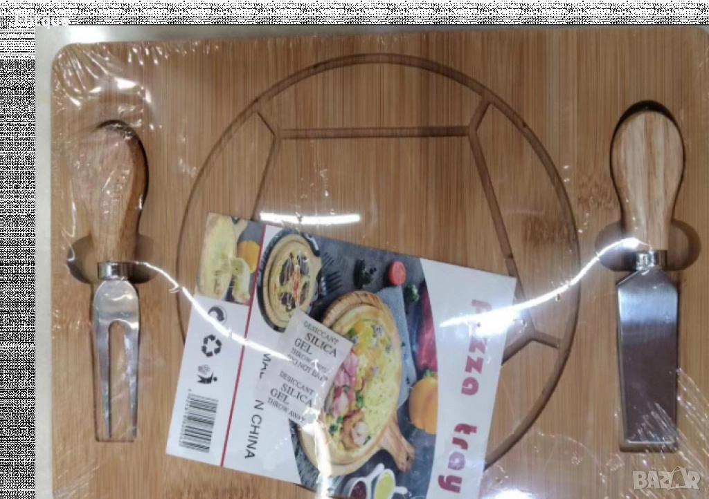 Дъска за пица с 2 прибора 29.5 x 19.5 x 1.5 см