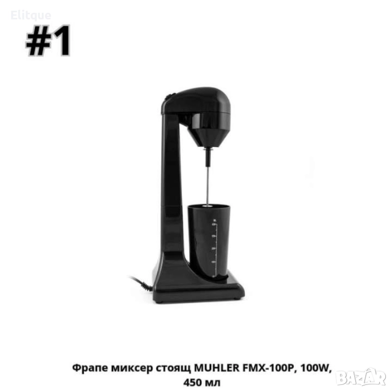 Вариант 1:Фрапе миксер стоящ MUHLER FMX-100P, 100W, 450 мл., Цвят: Черен;