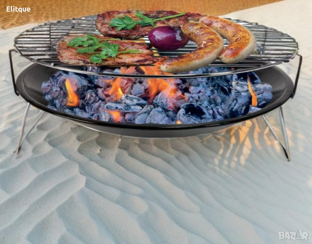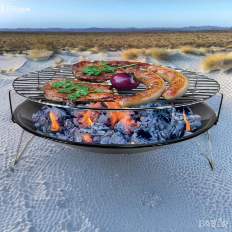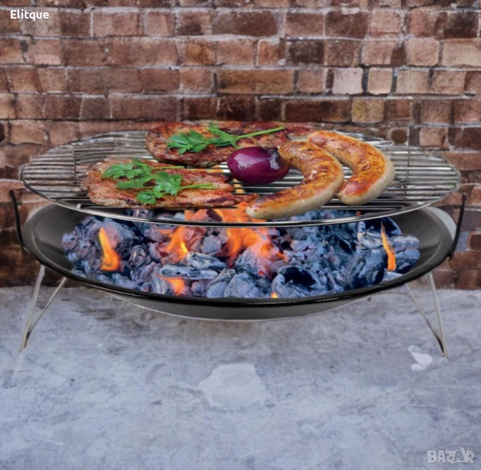 Тип гориво: Дървени въглища; Площ за готвене: Скара с диаметър 14 инча (ф-14), подходяща за приготвяне на големи парчета месо и разнообразни зеленчуци; Размери в см: 47 дължина x 37.5 ширина x 38.5 височина; Материал: Висококачествена метална конструкция със защитно покритие, осигуряващо издръжливост на високи температури и външни условия.