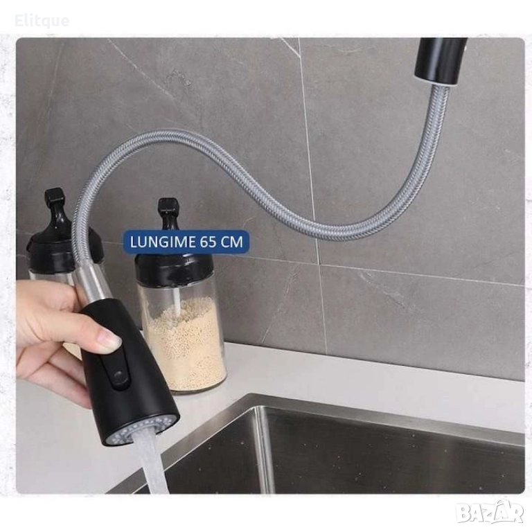 Кухненският смесител с издърпващ се душ в матово черно е идеалното допълнение за всяка модерна кухня. Със своя елегантен дизайн и висококачествени материали, този смесител предлага не само стил, но и изключителна функционалност. Издърпващият се чучур и въртящият се на 360° чучур предоставят максимална гъвкавост, докато бутонът за смяна на струята и единичният контрол на температурата и налягането на водата осигуряват лесно управление и комфорт. Изработен от хранителна стомана с никелово покритие, този смесител е устойчив на корозия и лесен за почистване, което го прави перфектен избор за всеки, който търси дълготраен и стилен кухненски аксесоар.