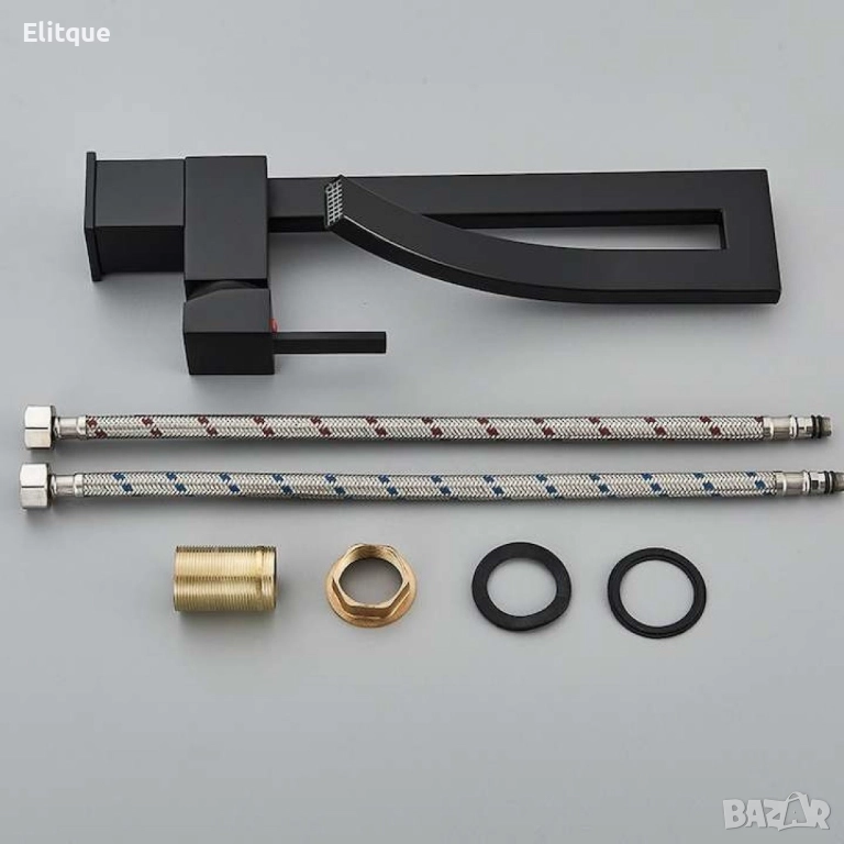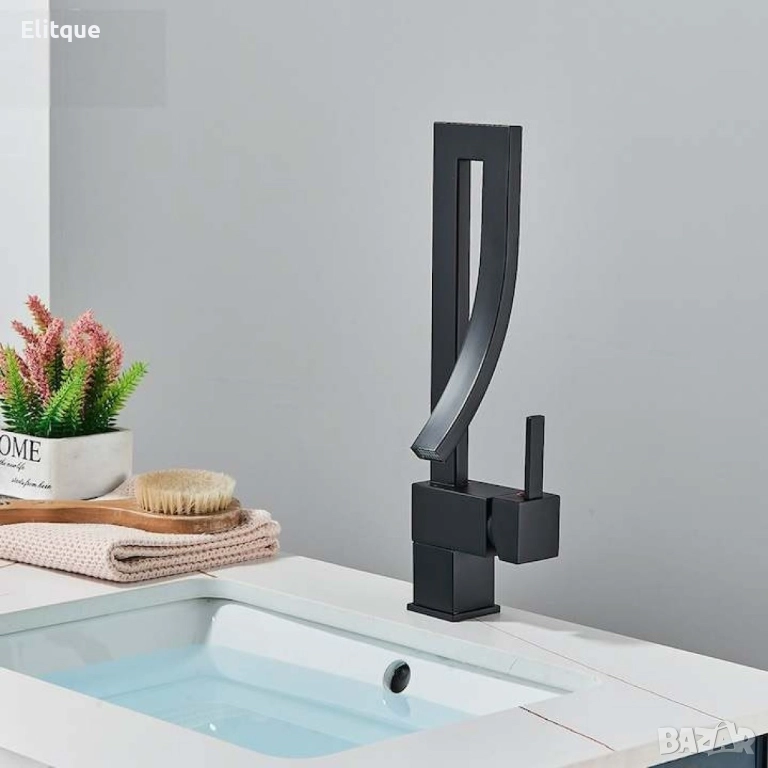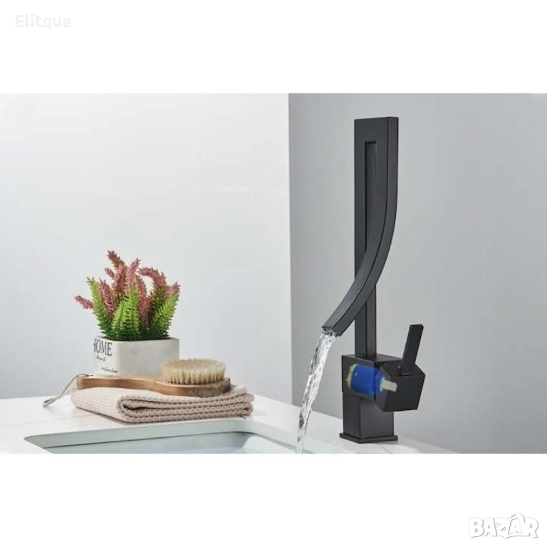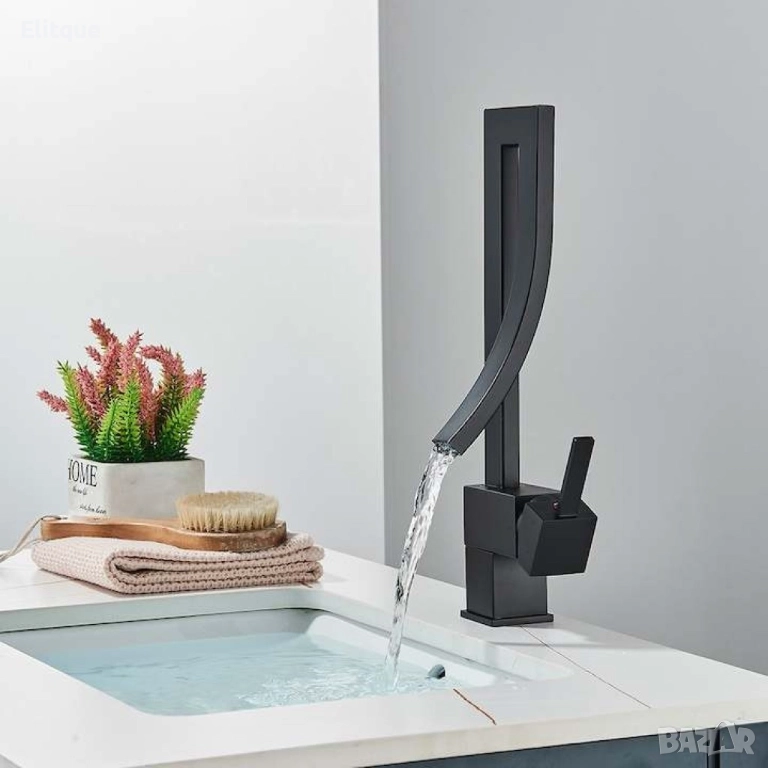 Смесител за мивка модел водопад, матов, черен