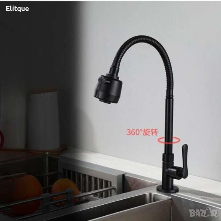 Кухненският смесител в черно съчетава стил, елегантност и функционалност в един изискан продукт. С въртящия се на 360 градуса чучур, компактен и елегантен дизайн, и издръжливи материали, този смесител е идеален избор за всяка съвременна кухня. Независимо дали искате да добавите луксозен акцент или просто търсите практично и красиво решение, този смесител ще удовлетвори всичките ви нужди.