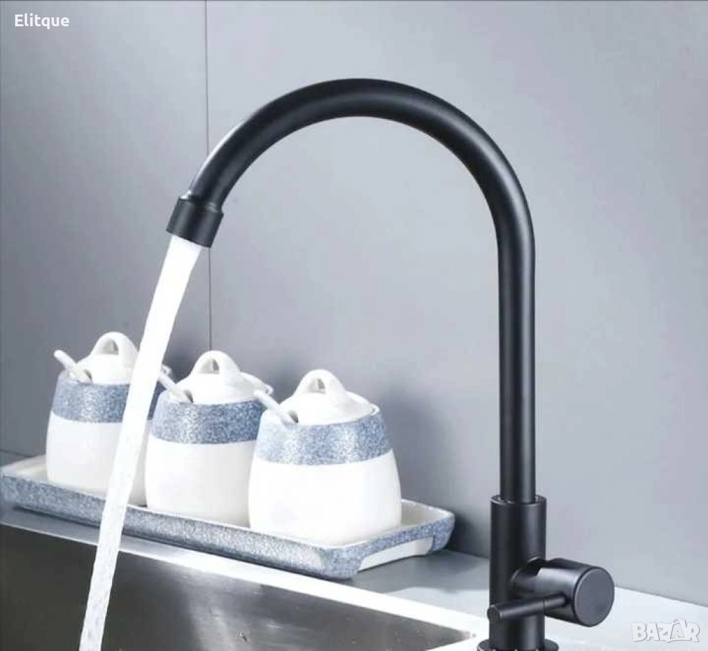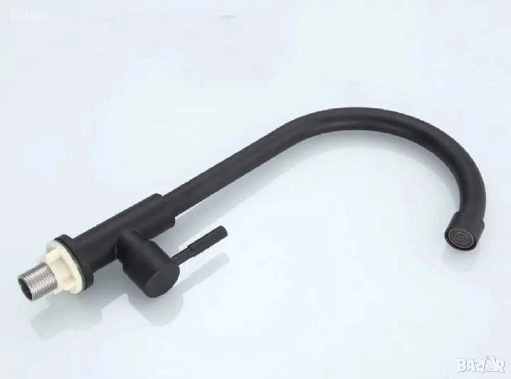 Кухненският въртящ се черен смесител от неръждаема стомана с матово покритие не само че ще допълни вашия кухненски интериор с елегантност, но и предлага надеждна и удобна употреба. Съчетаващ стабилност, лесно почистване и изключителен дизайн, този кран е перфектният избор за модерната кухня.