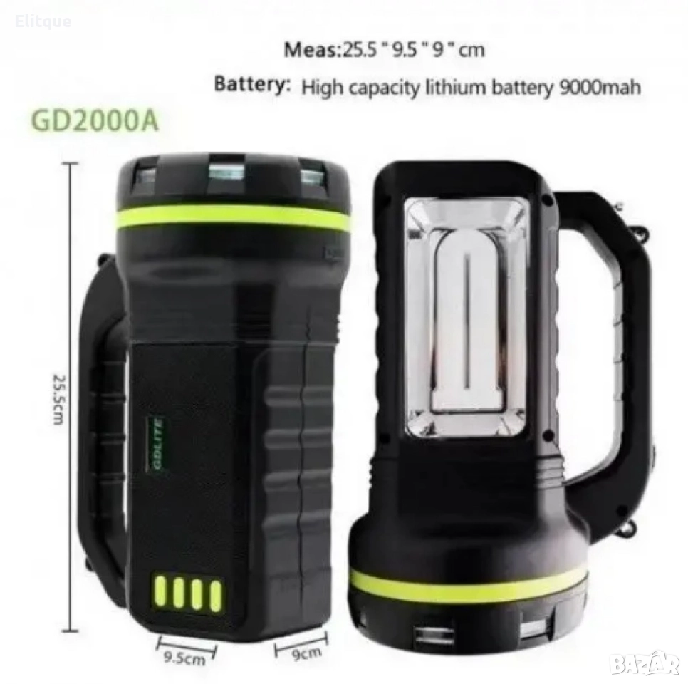 Преносима соларна станция (фенер) GDLITE GD-2000A + слънчев панел + 3 лампи