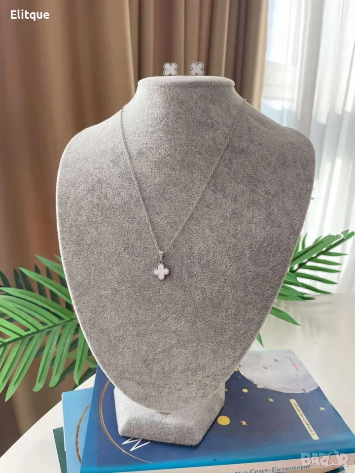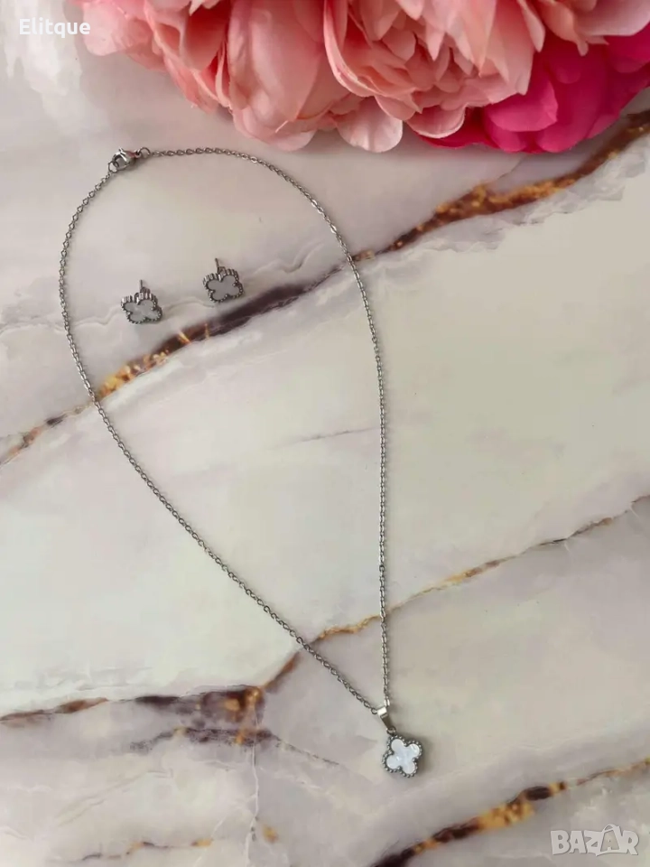 Сет/Комплект JL Famous Clover Silver 1098 19.90лв. (10.17€) Материал: Изработени от неръждаем метал Дизайн: Цвят метал- сребрист, цвят декорация – бял . Сетът включва