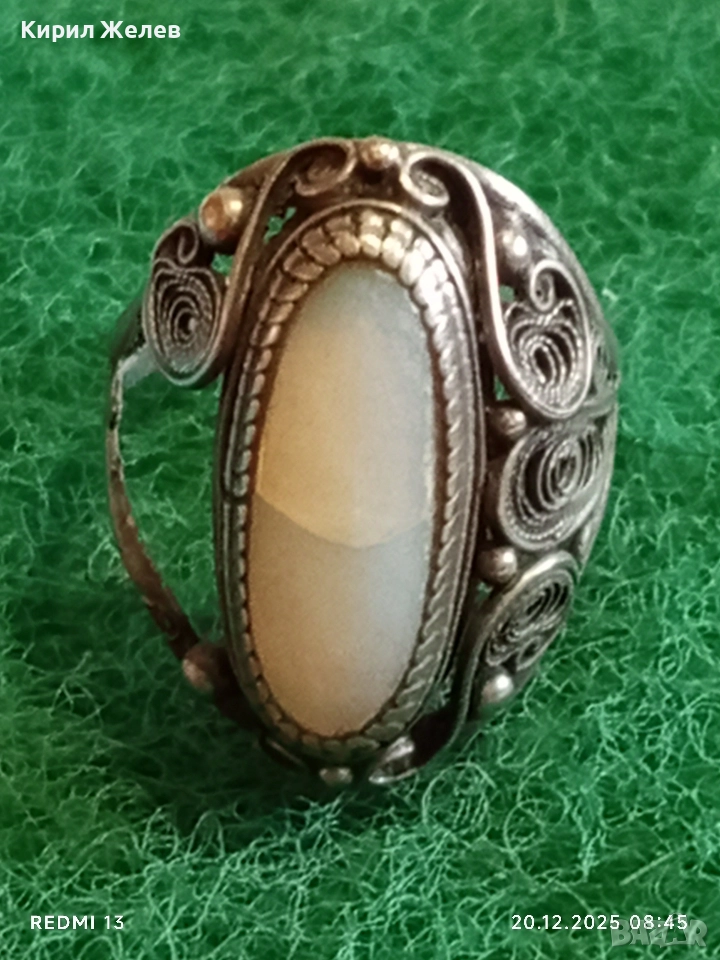 Сребърен пръстен филигранна изработка с камък ОПАЛ майсторска ръчна изработка 31616